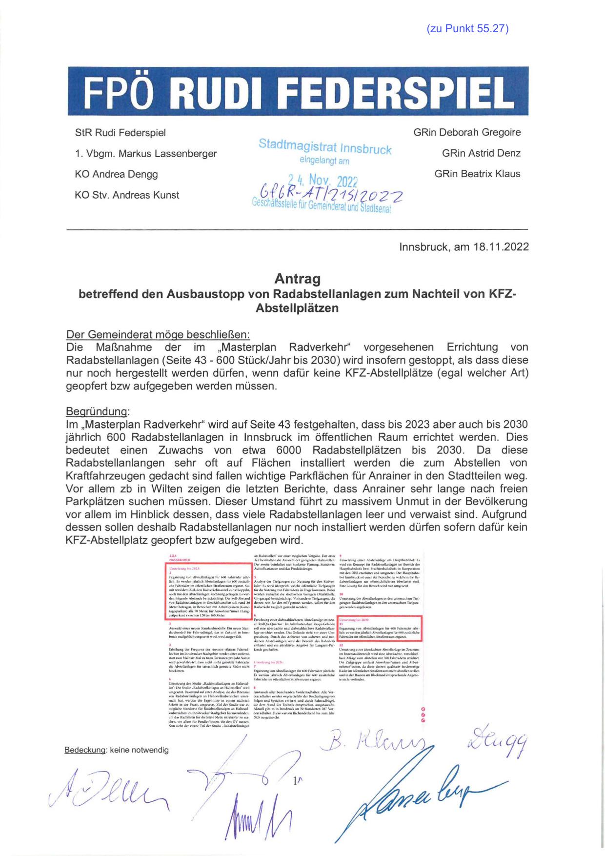 betreffend den Ausbaustopp von Radabstellanlagen zum Nachteil von KFZAbstellplätzen