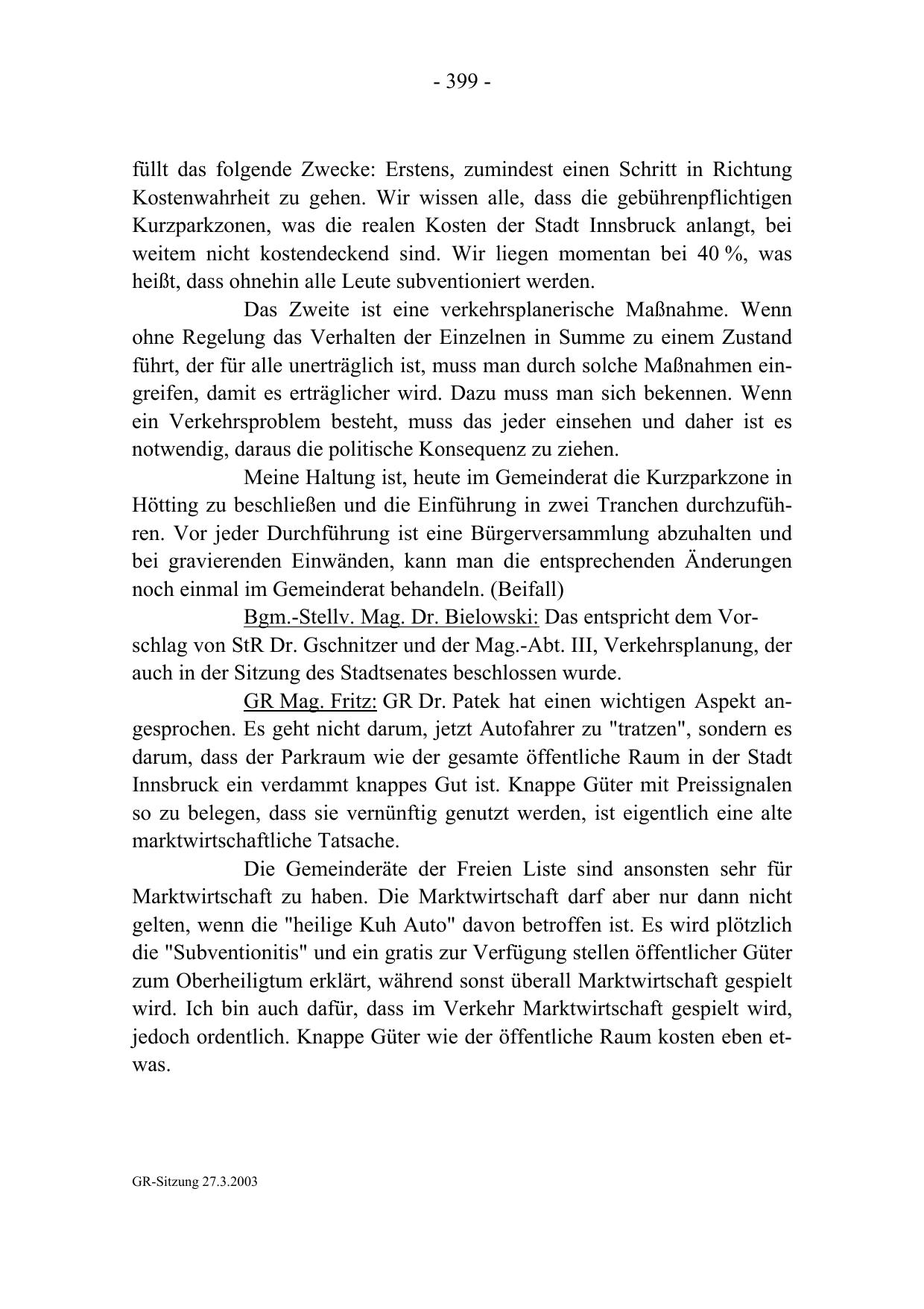 Bgm.-Stellv. Mag. Dr. Bielowski: Das entspricht dem Vorschlag von StR Dr. Gschnitzer und der Mag.-Abt. III, Verkehrsplanung, der