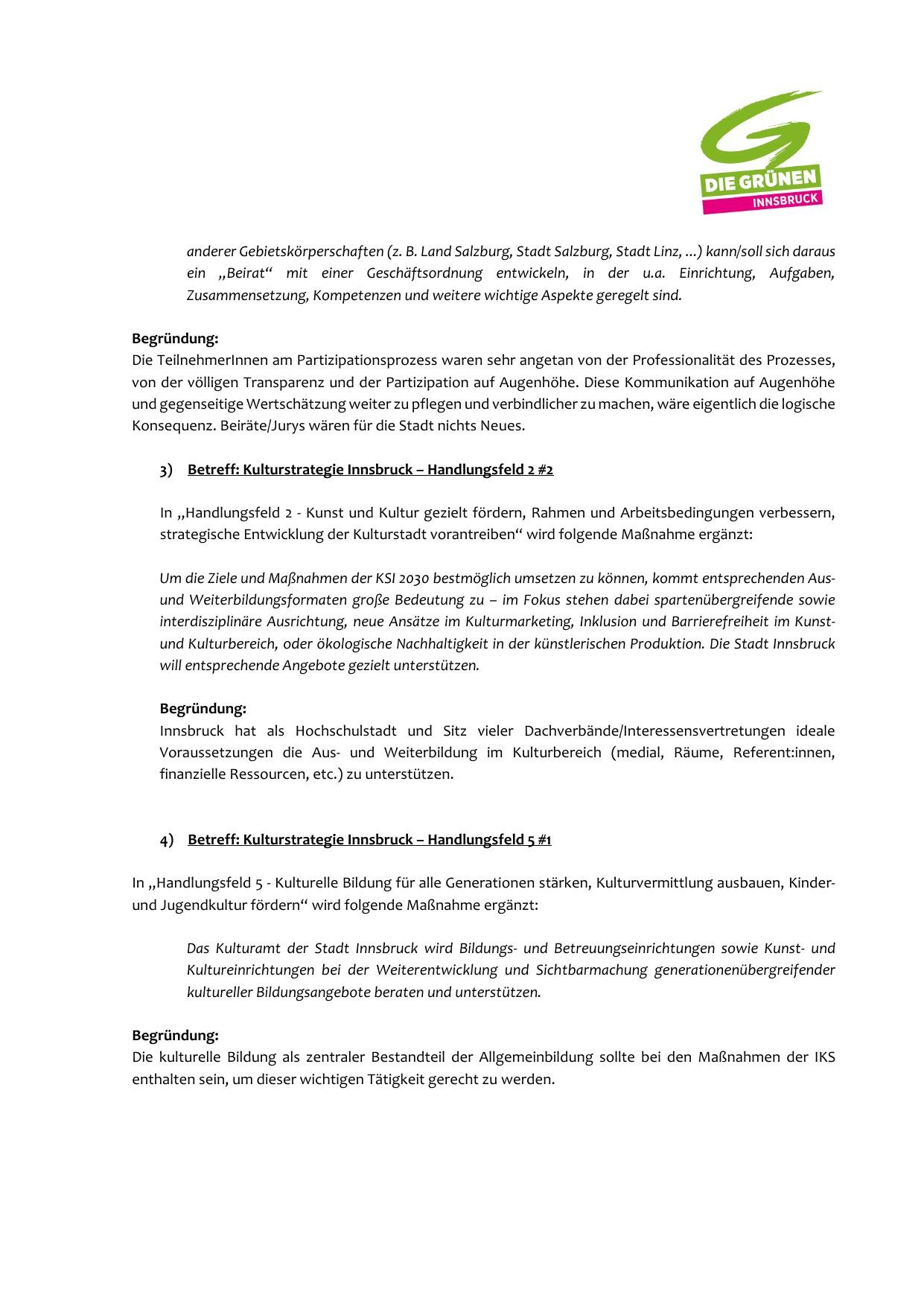 3) Betreff: Kulturstrategie Innsbruck – Handlungsfeld 2 #2