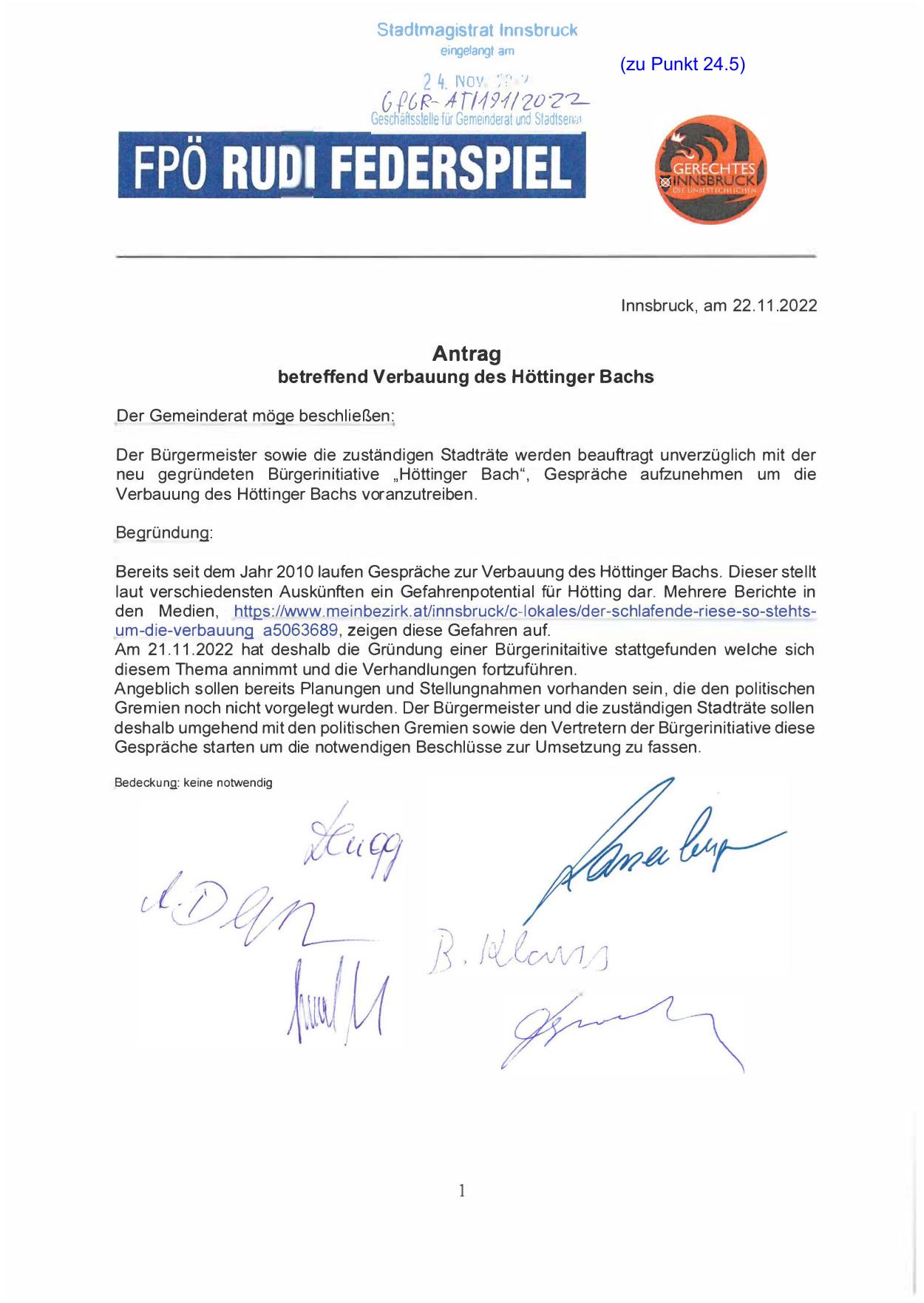 neu gegründeten Bürgerin itiative „ Höttin ger Ba ch " , G espräch e a ufzunehmen um die