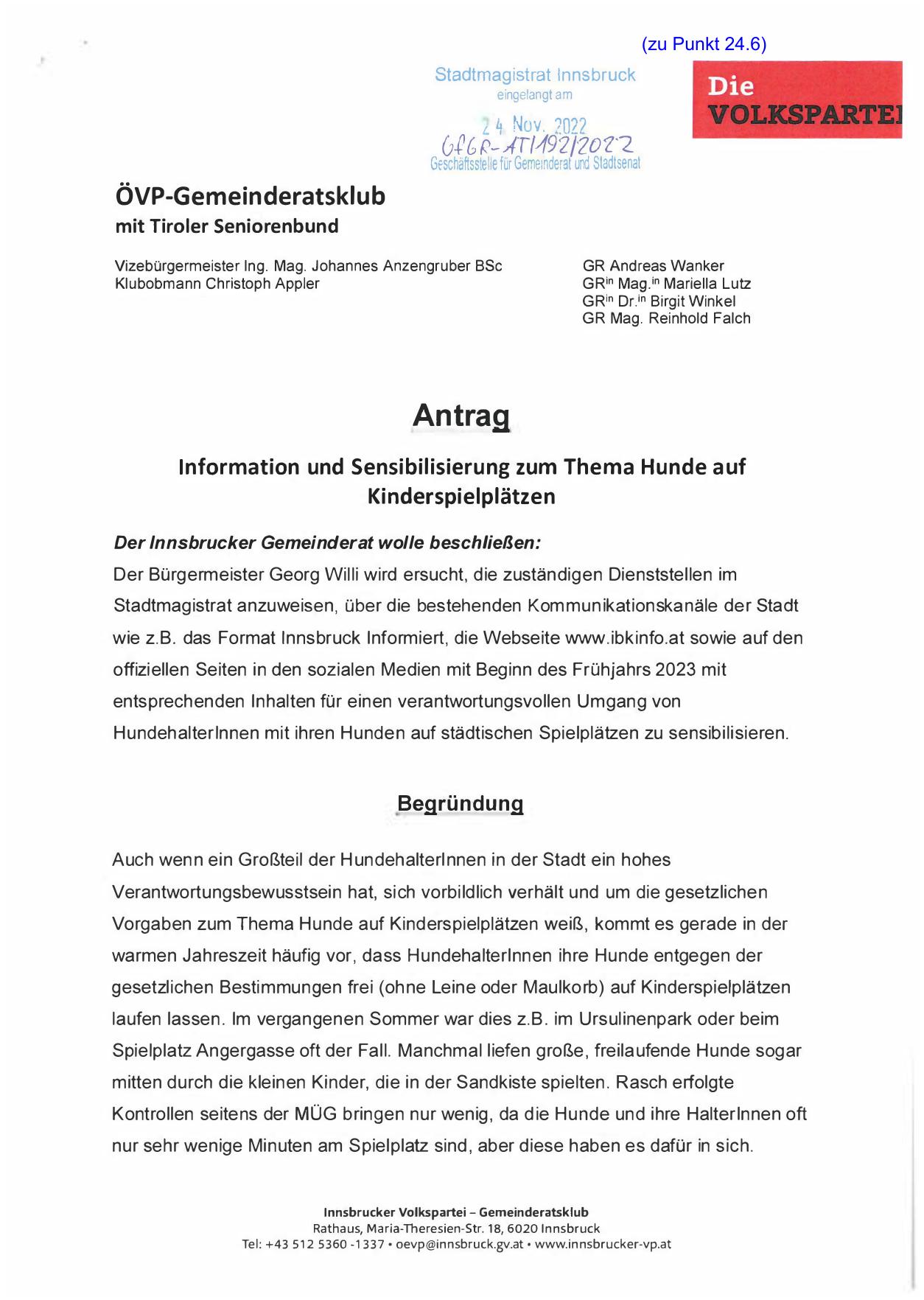 Te l : +43 5 1 2 5 3 6 0 - 1 3 3 7 • oevp @ in nsbru ck.gv.at • www.in nsbrucker-vp.at