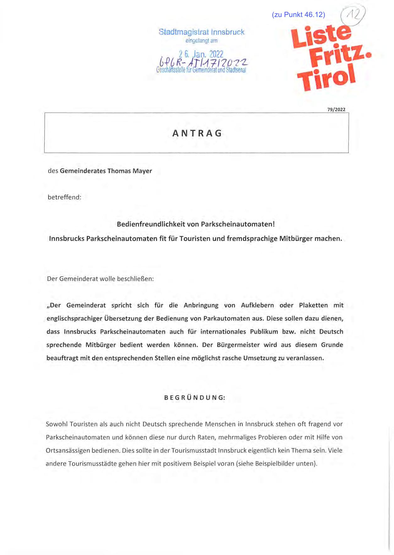 lnnsbrucks Parkscheinautomaten fit für Touristen und fremdsprachige Mitbürger machen.
