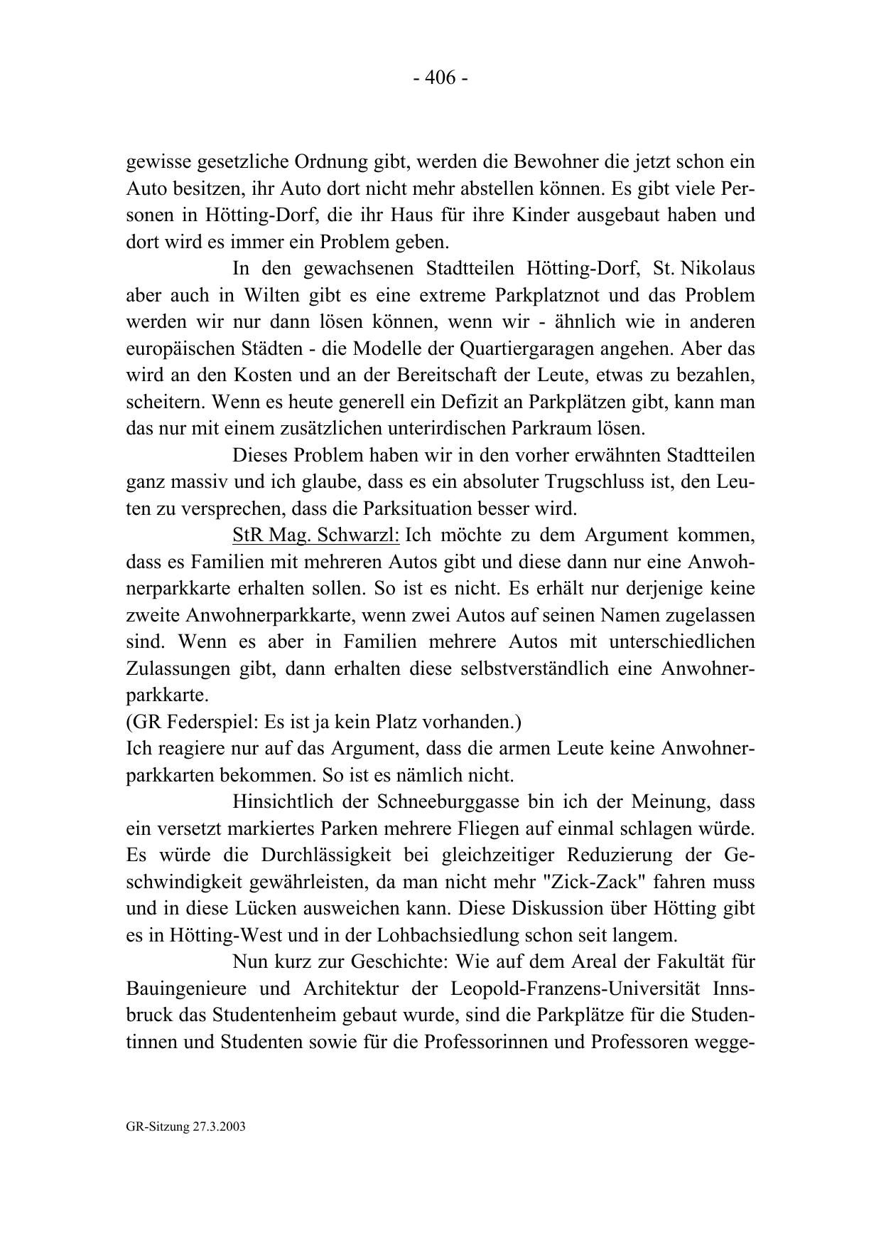 Auto besitzen, ihr Auto dort nicht mehr abstellen können. Es gibt viele Personen in Hötting-Dorf, die ihr Haus für ihre Kinder ausgebaut haben und