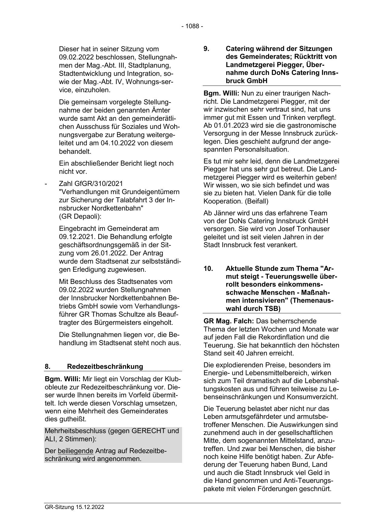 der Innsbrucker Nordkettenbahnen Betriebs GmbH sowie vom Verhandlungsführer GR Thomas Schultze als Beauftragter des Bürgermeisters eingeholt.