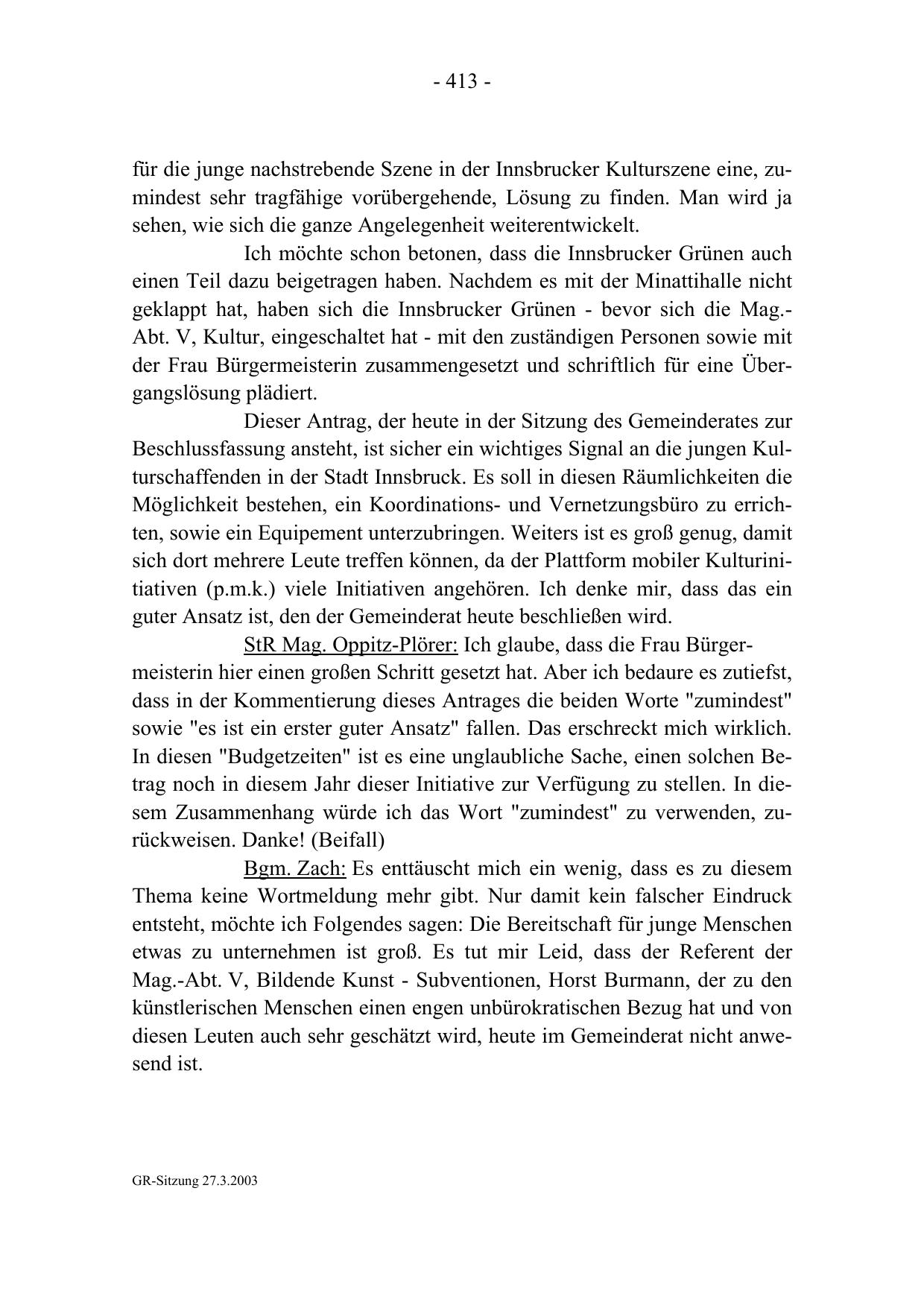 StR Mag. Oppitz-Plörer: Ich glaube, dass die Frau Bürgermeisterin hier einen großen Schritt gesetzt hat. Aber ich bedaure es zutiefst,