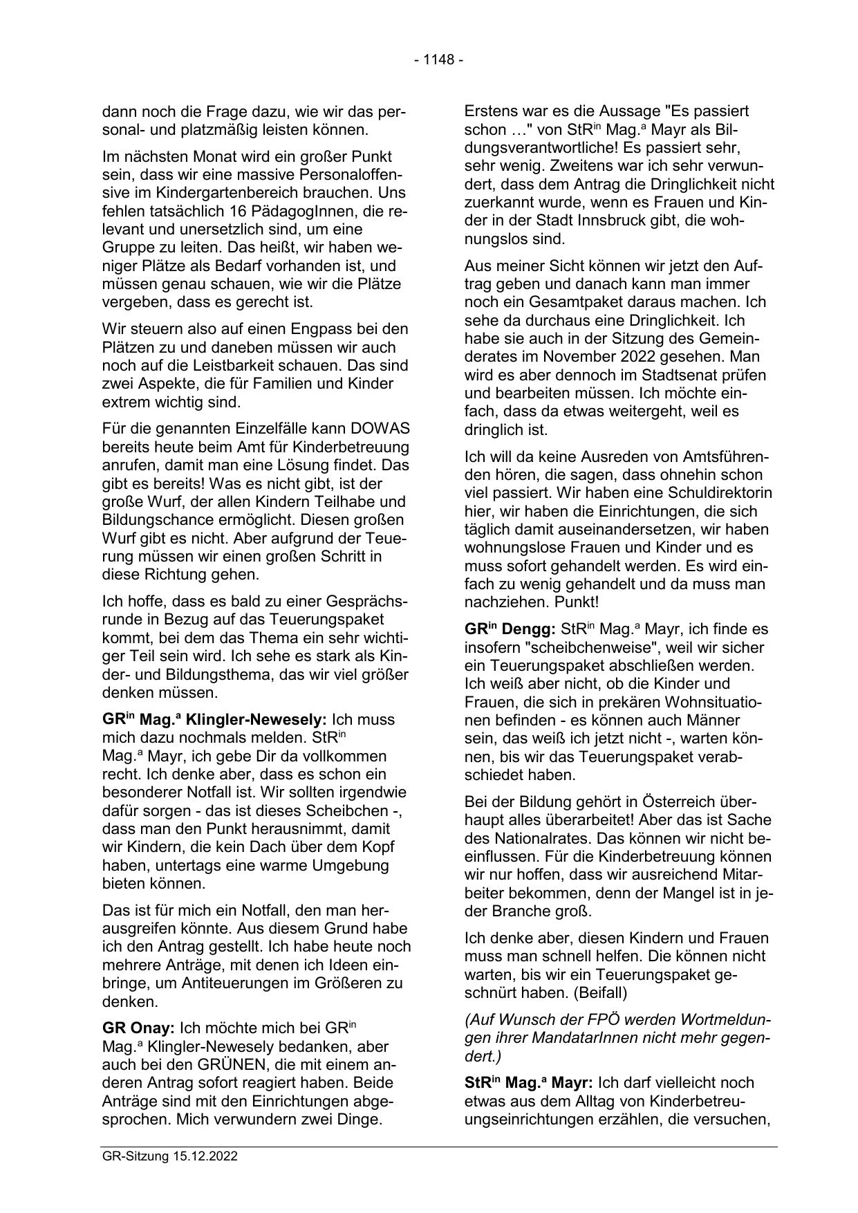 GRin Dengg: StRin Mag.a Mayr, ich finde es