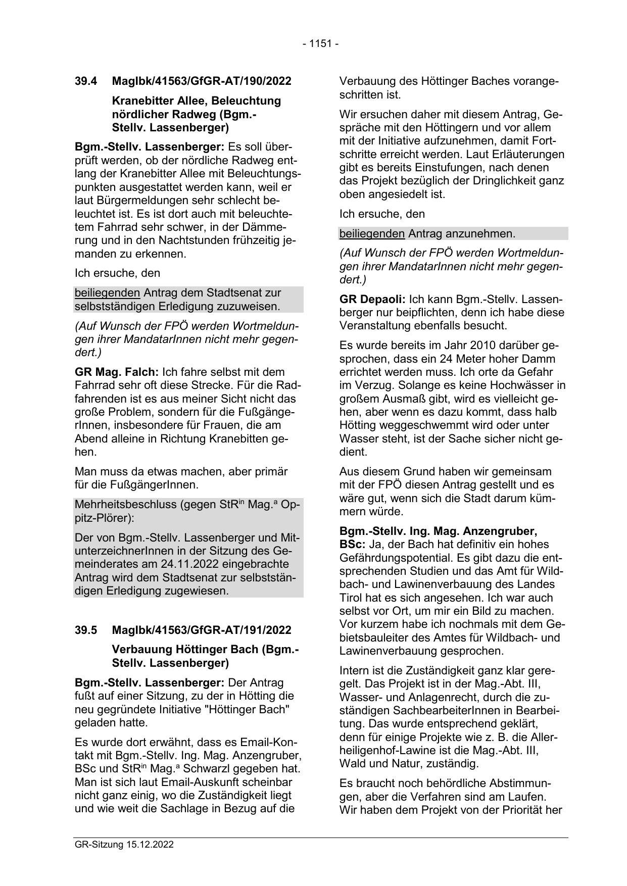 Der von Bgm.-Stellv. Lassenberger und MitunterzeichnerInnen in der Sitzung des Gemeinderates am 24.11.2022 eingebrachte