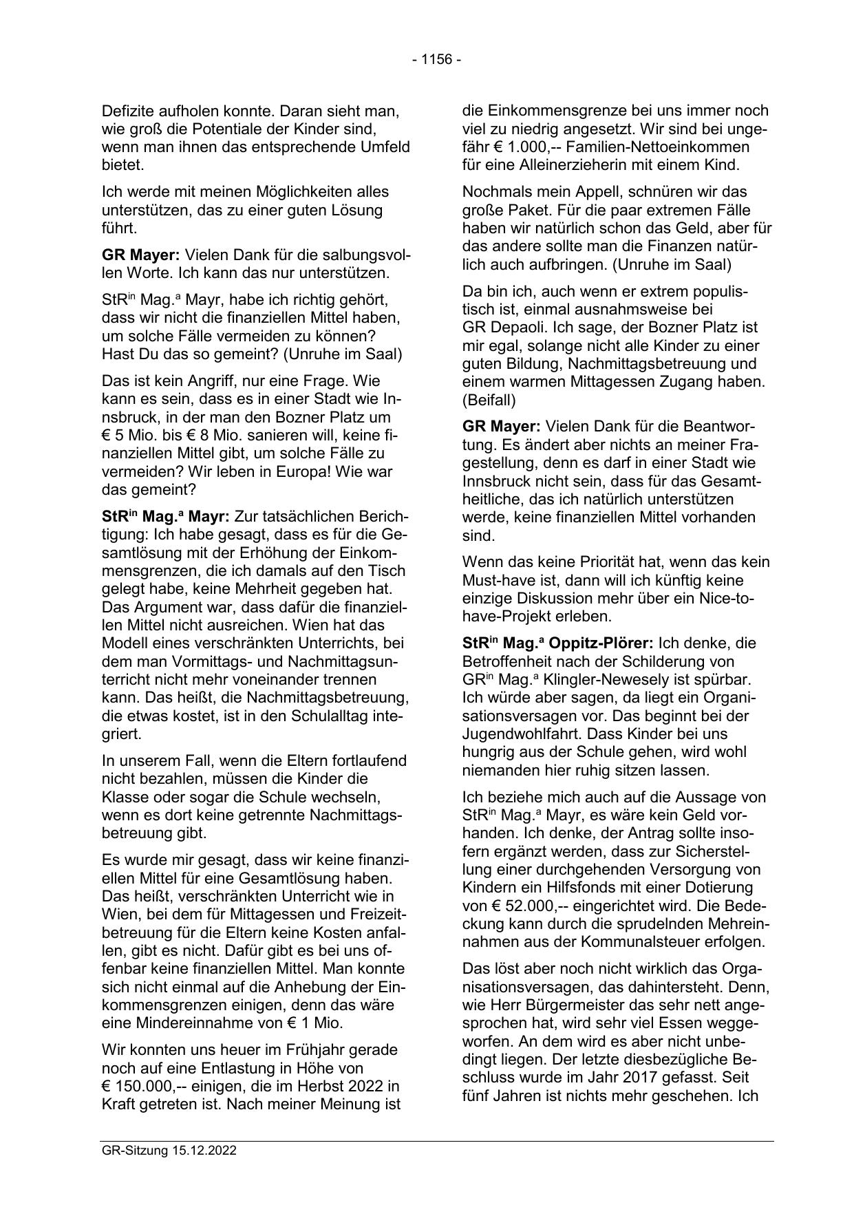 StRin Mag.a Mayr: Zur tatsächlichen Berichtigung: Ich habe gesagt, dass es für die Gesamtlösung mit der Erhöhung der Einkommensgrenzen, die ich damals auf den Tisch
