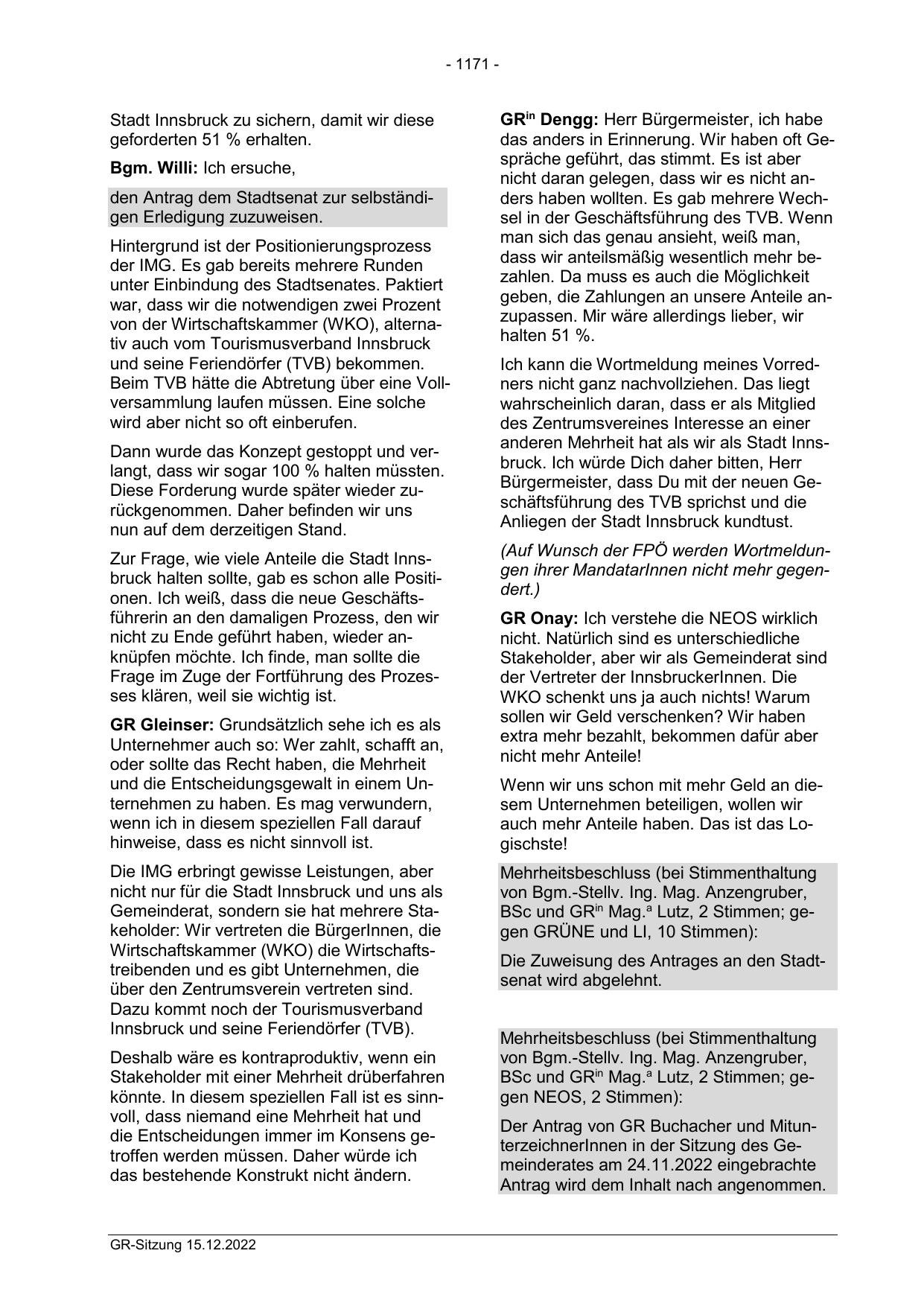 anderen Mehrheit hat als wir als Stadt Innsbruck. Ich würde Dich daher bitten, Herr