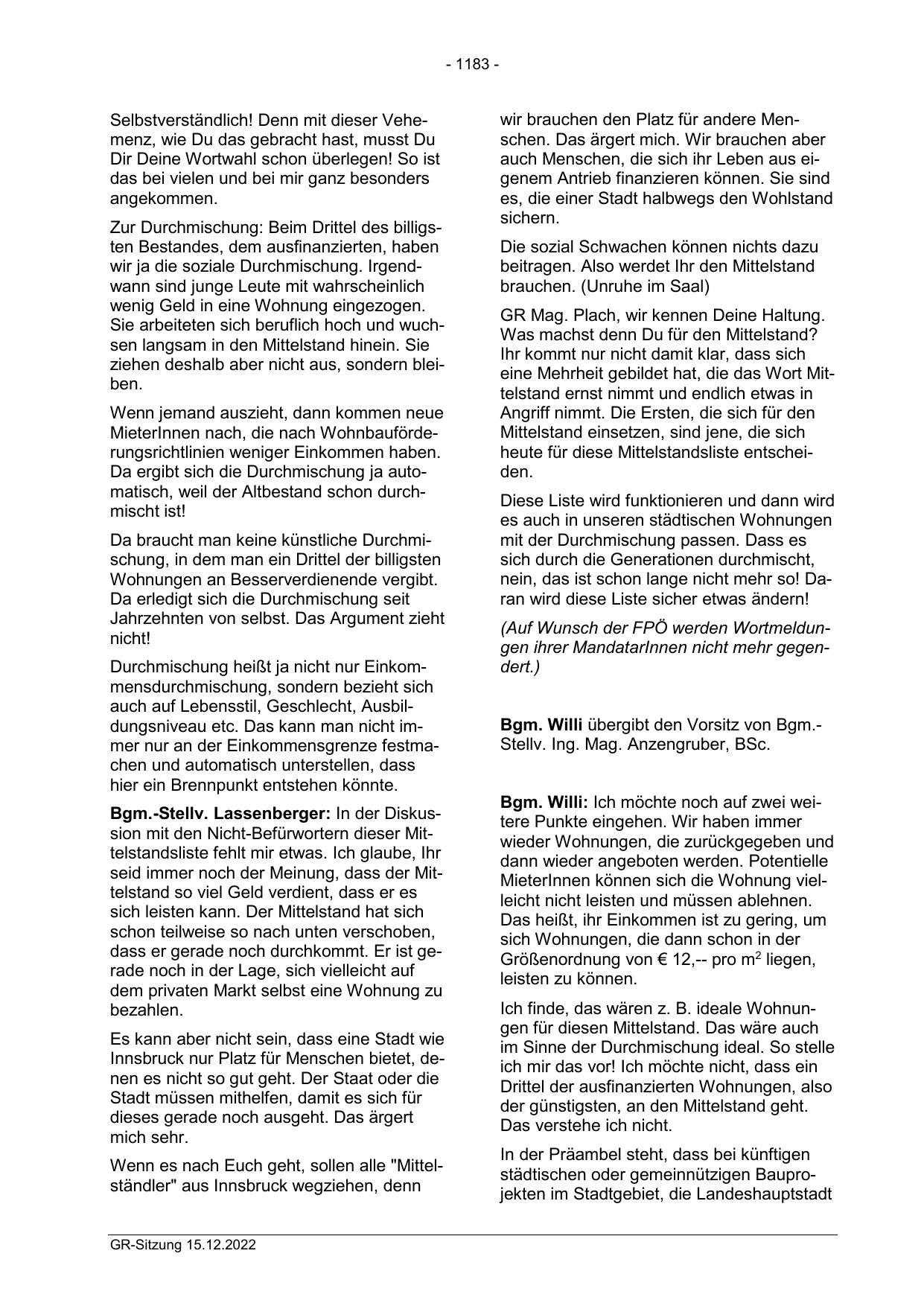 (Auf Wunsch der FPÖ werden Wortmeldungen ihrer MandatarInnen nicht mehr gegendert.)
