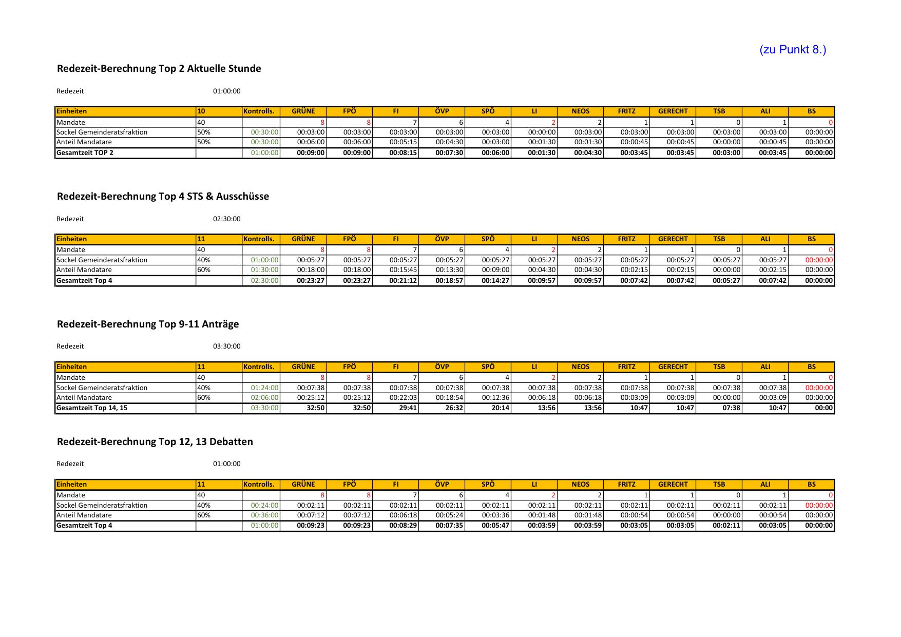 Redezeit-Berechnung Top 2 Aktuelle Stunde