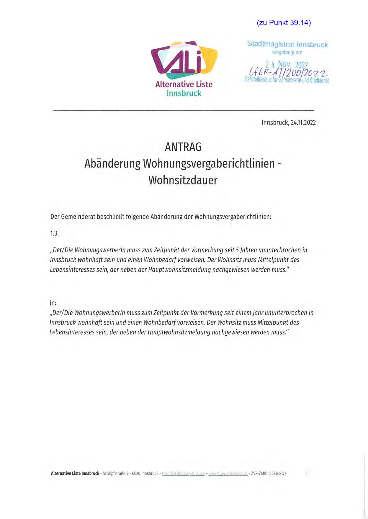 Innsbruck wohnhaft sein und einen Wohnbedarf vorweisen. Der Wohnsitz muss Mittelpunkt des