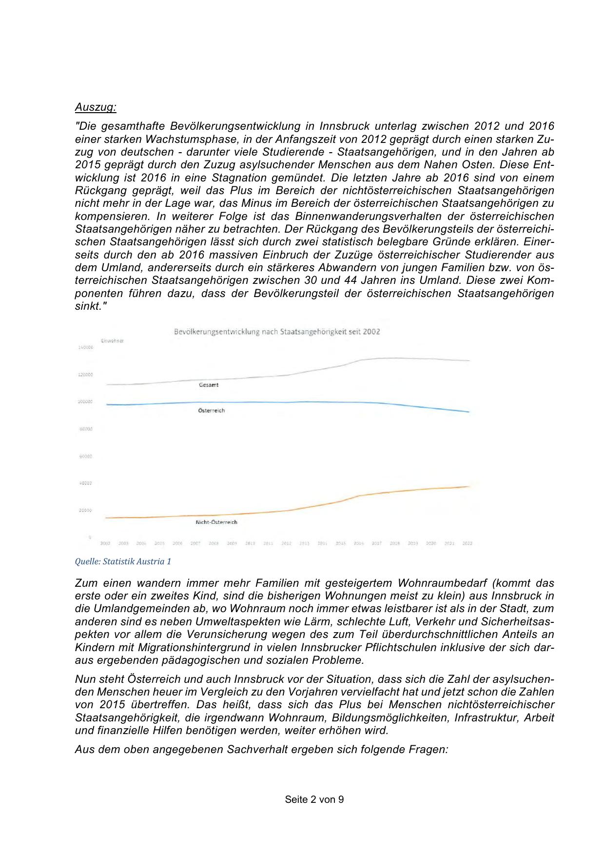 Staatsangehörigen näher zu betrachten. Der Rückgang des Bevölkerungsteils der österreichischen Staatsangehörigen lässt sich durch zwei statistisch belegbare Gründe erklären. Einerseits durch den ab 2016 massiven Einbruch der Zuzüge österreichischer Studierender aus