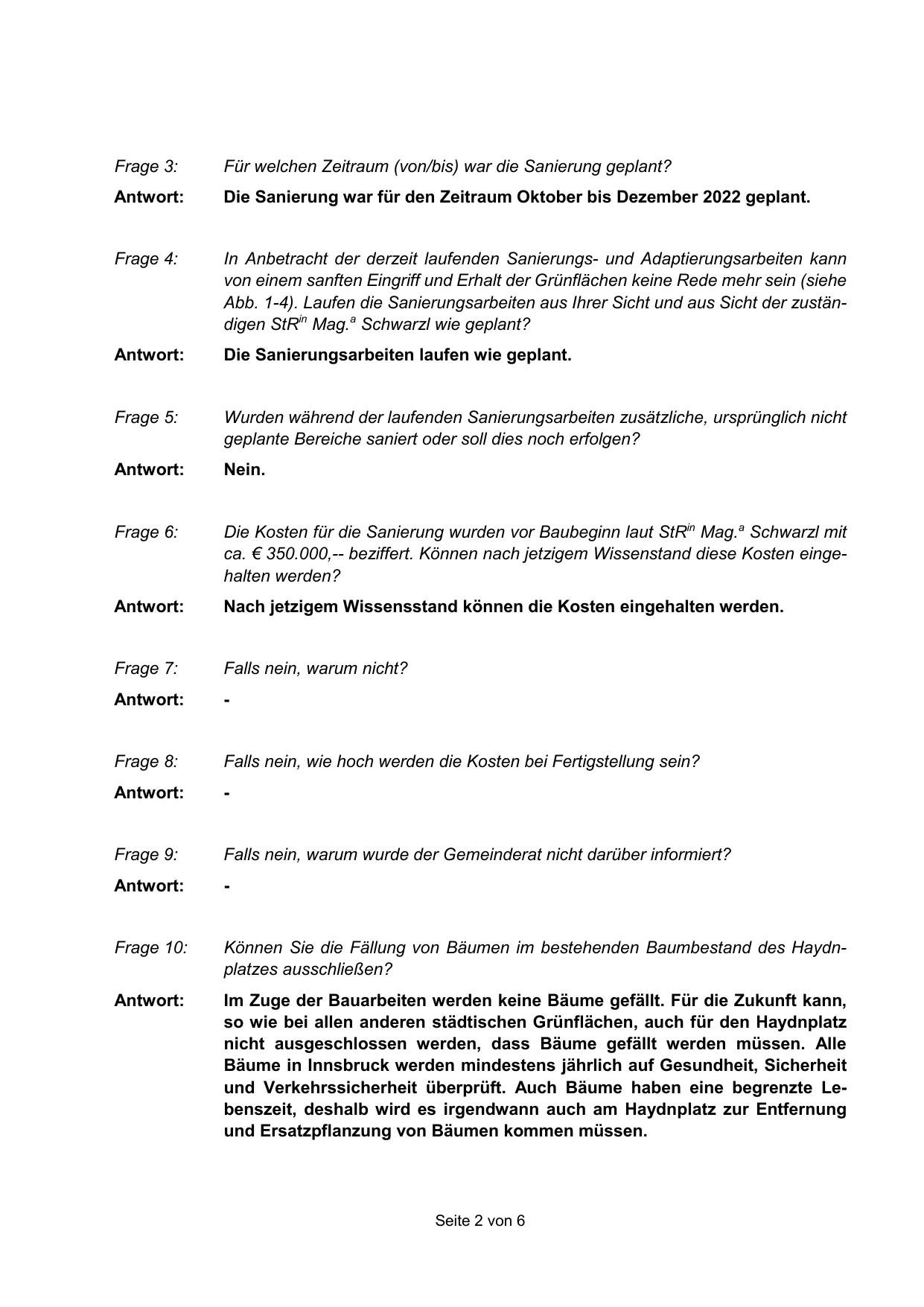 so wie bei allen anderen städtischen Grünflächen, auch für den Haydnplatz