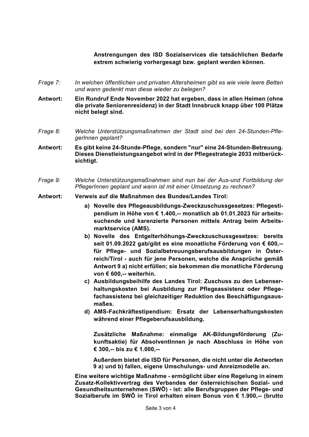 PflegerInnen geplant und wann ist mit einer Umsetzung zu rechnen?
