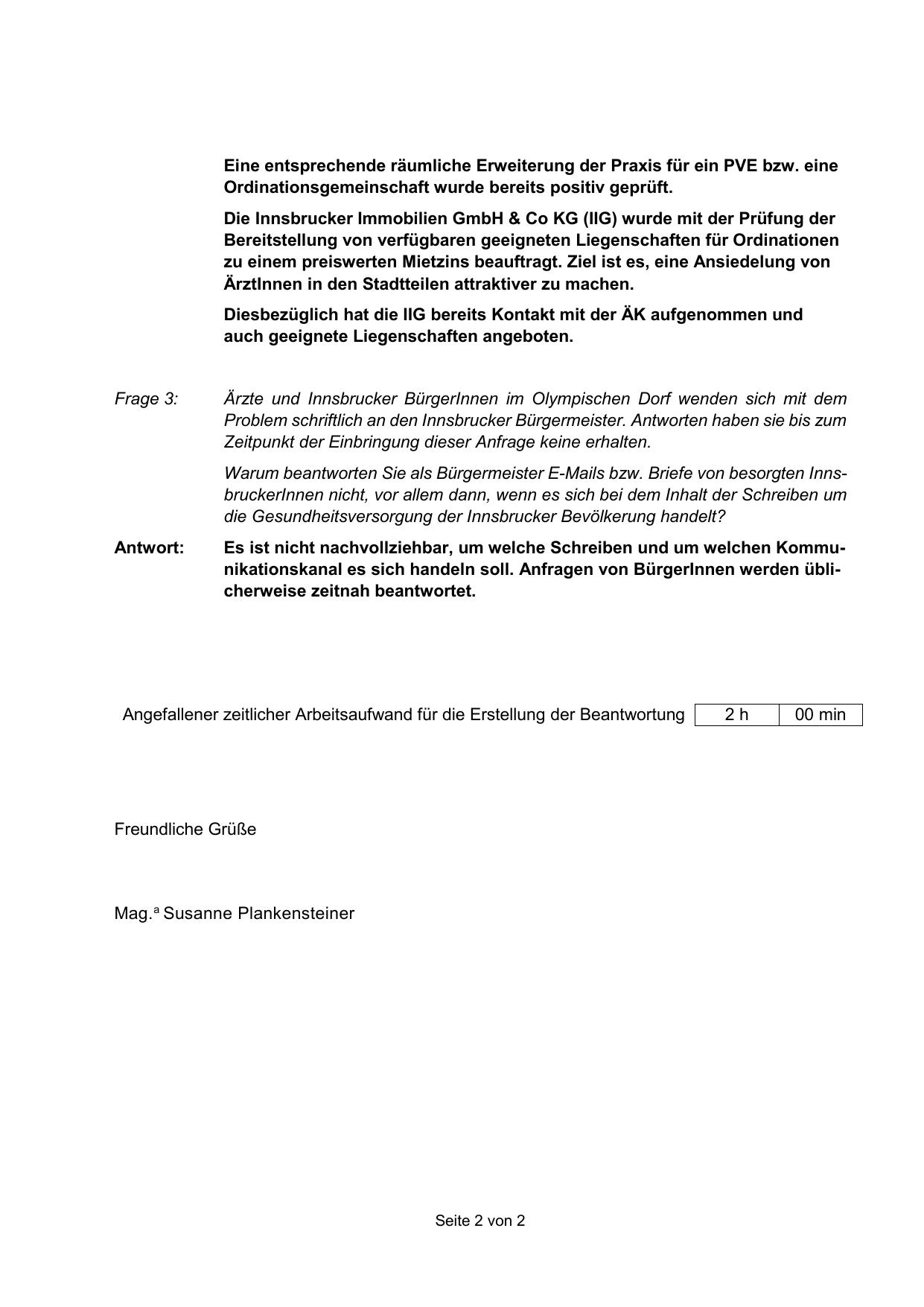 Problem schriftlich an den Innsbrucker Bürgermeister. Antworten haben sie bis zum