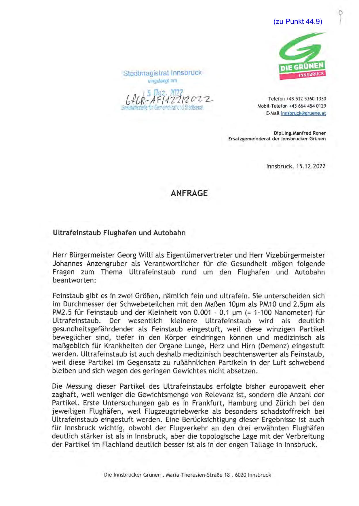 Ersatzgemeinderat der lnnsbrucker Grünen