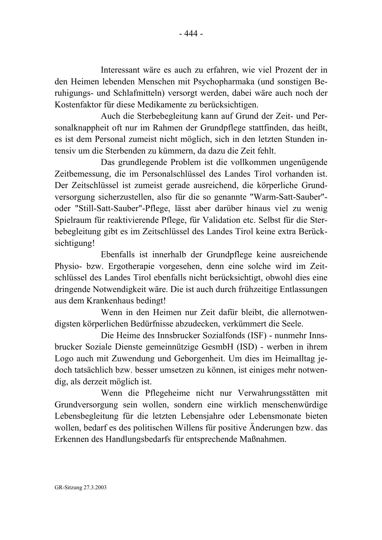 Spielraum für reaktivierende Pflege, für Validation etc. Selbst für die Sterbebegleitung gibt es im Zeitschlüssel des Landes Tirol keine extra Berücksichtigung!