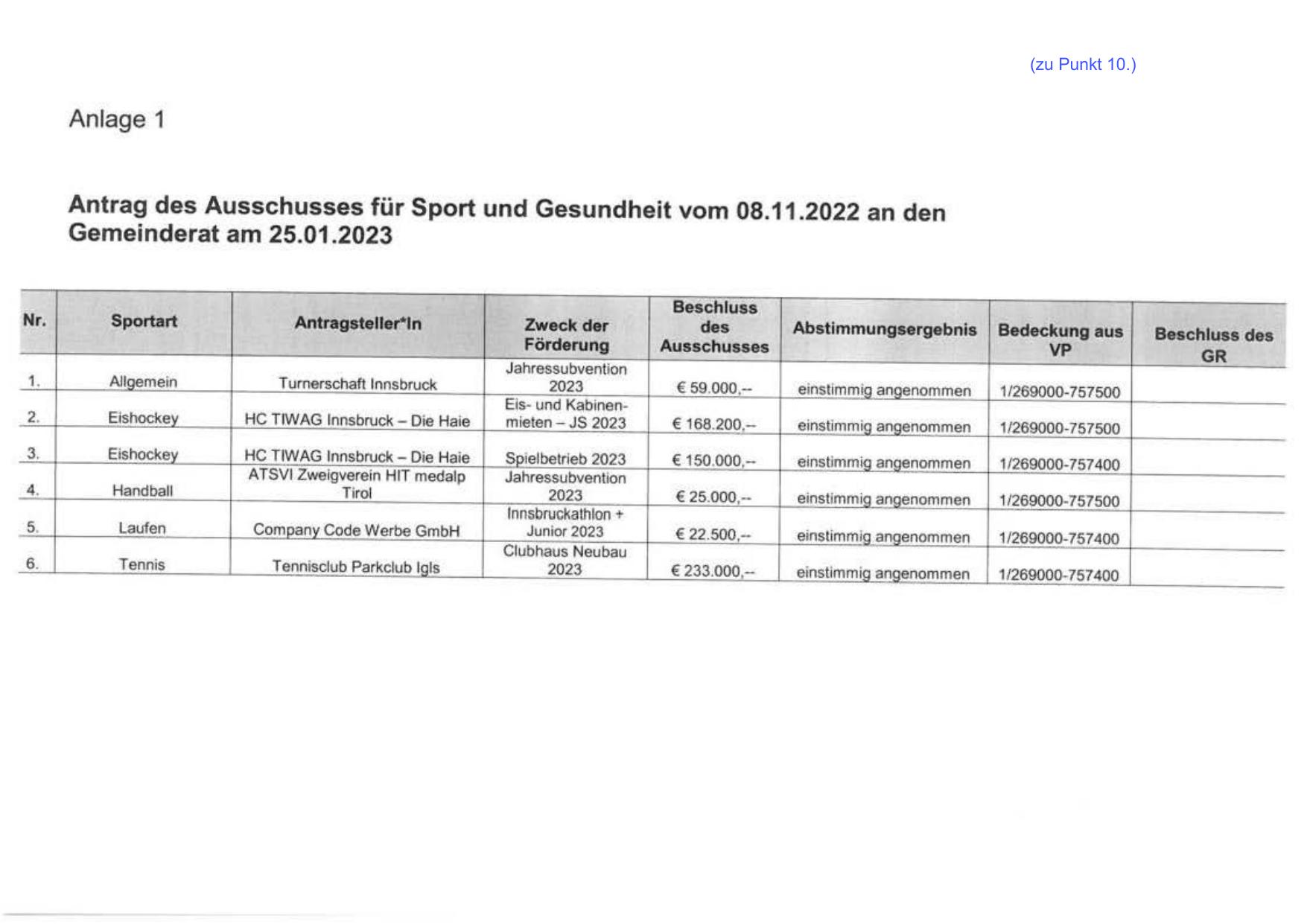 Antrag des Ausschusses für Sport und Gesundheit vom 08.11.2022 an den