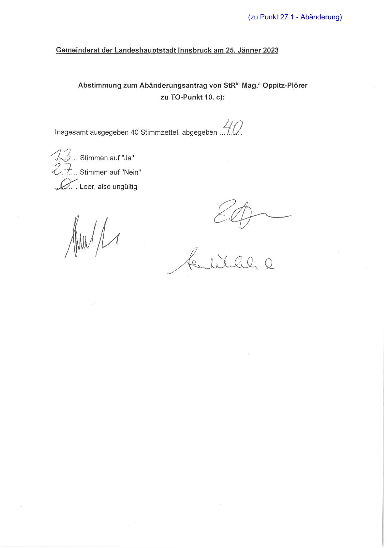 (zu Punkt 27.1 - Abänderung)