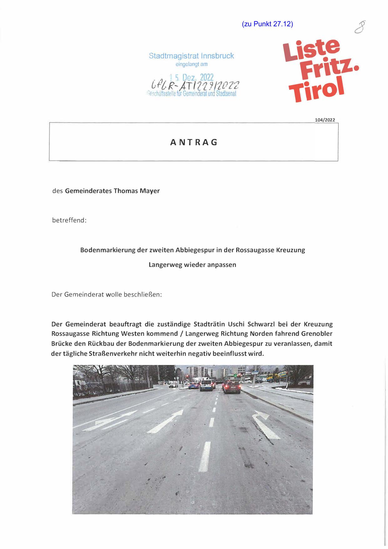 Der Gemeinderat beauftragt die zuständige Stadträtin Uschi Schwarz( bei der Kreuzung