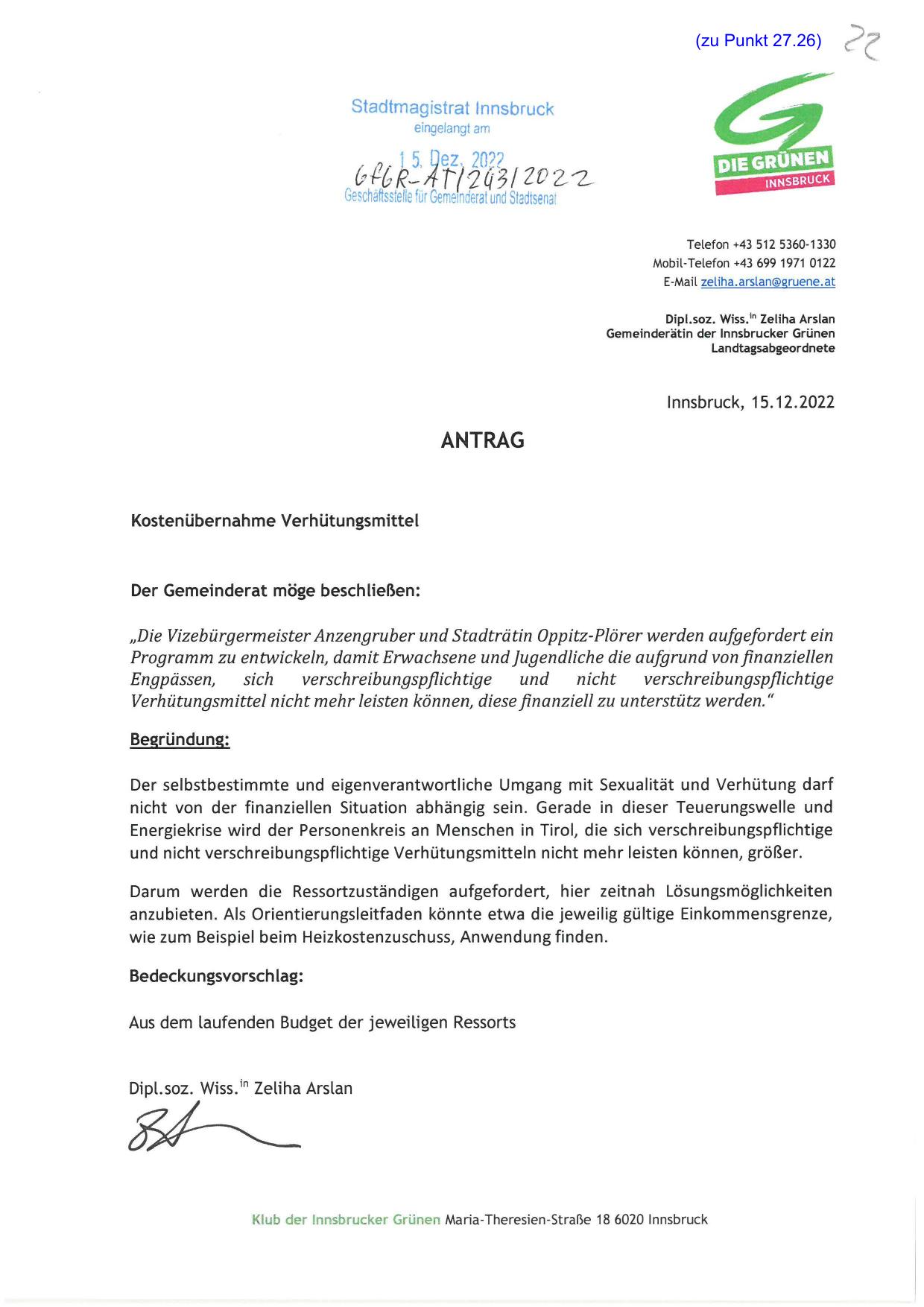 Verhütungsmittel nicht mehr leisten können, diese finanziell zu unterstütz werden."