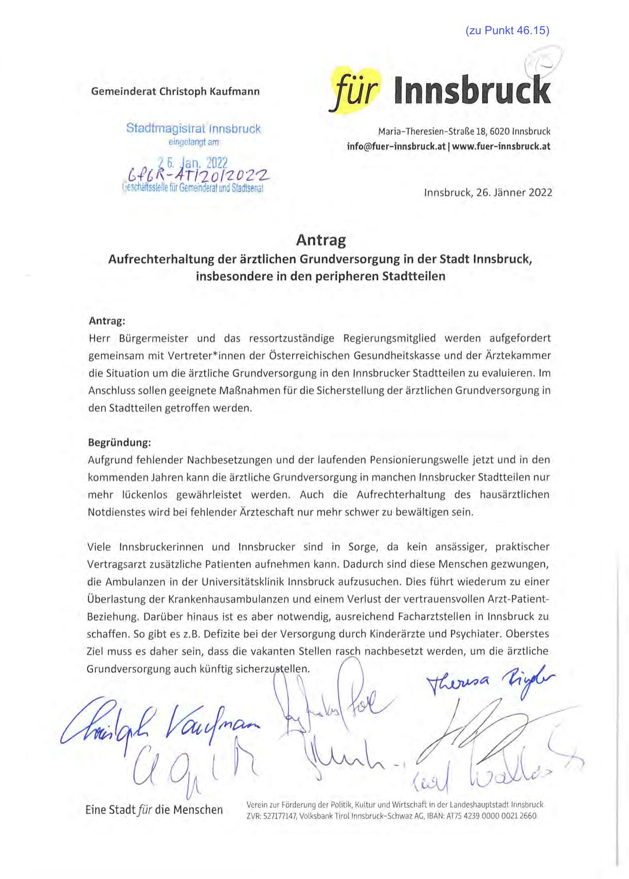 Aufrechterhaltung der ärztlichen Grundversorgung in der Stadt Innsbruck,