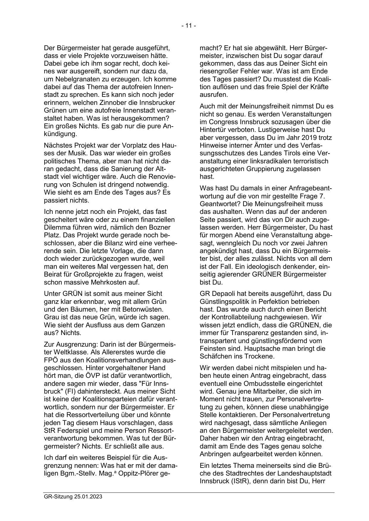 Ich darf ein weiteres Beispiel für die Ausgrenzung nennen: Was hat er mit der damaligen Bgm.-Stellv. Mag.a Oppitz-Plörer geGR-Sitzung 25.01.2023