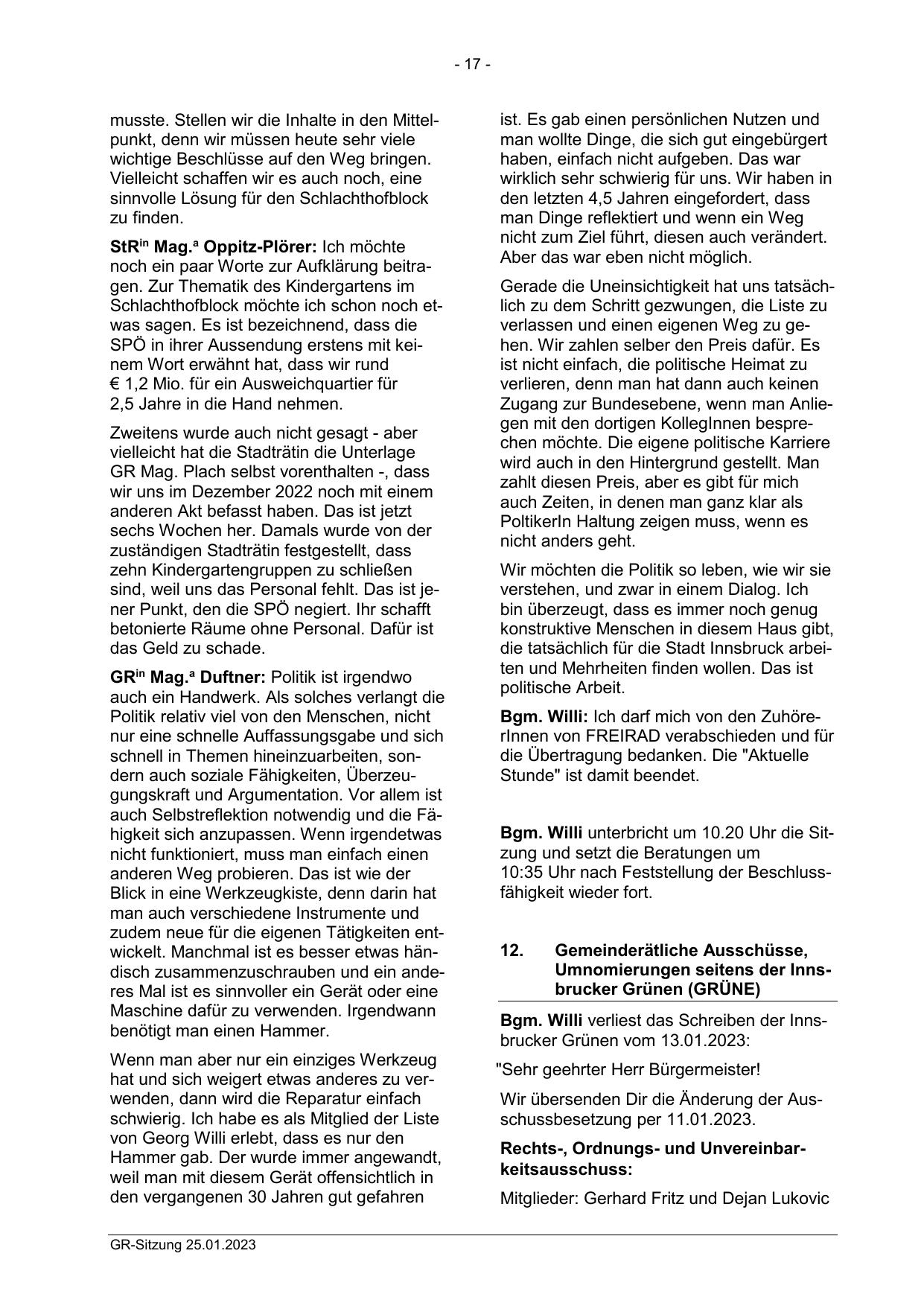 Bgm. Willi verliest das Schreiben der Innsbrucker Grünen vom 13.01.2023: