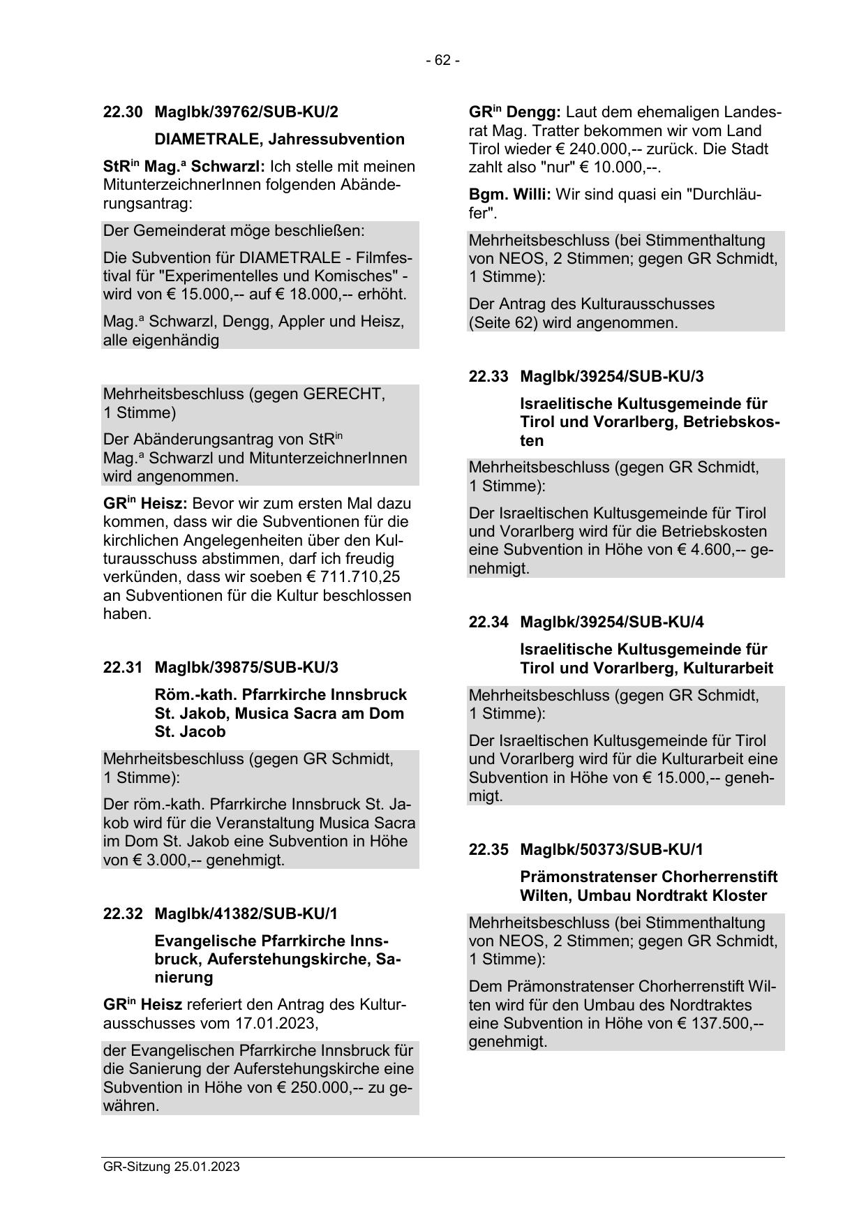 Mehrheitsbeschluss (gegen GR Schmidt,