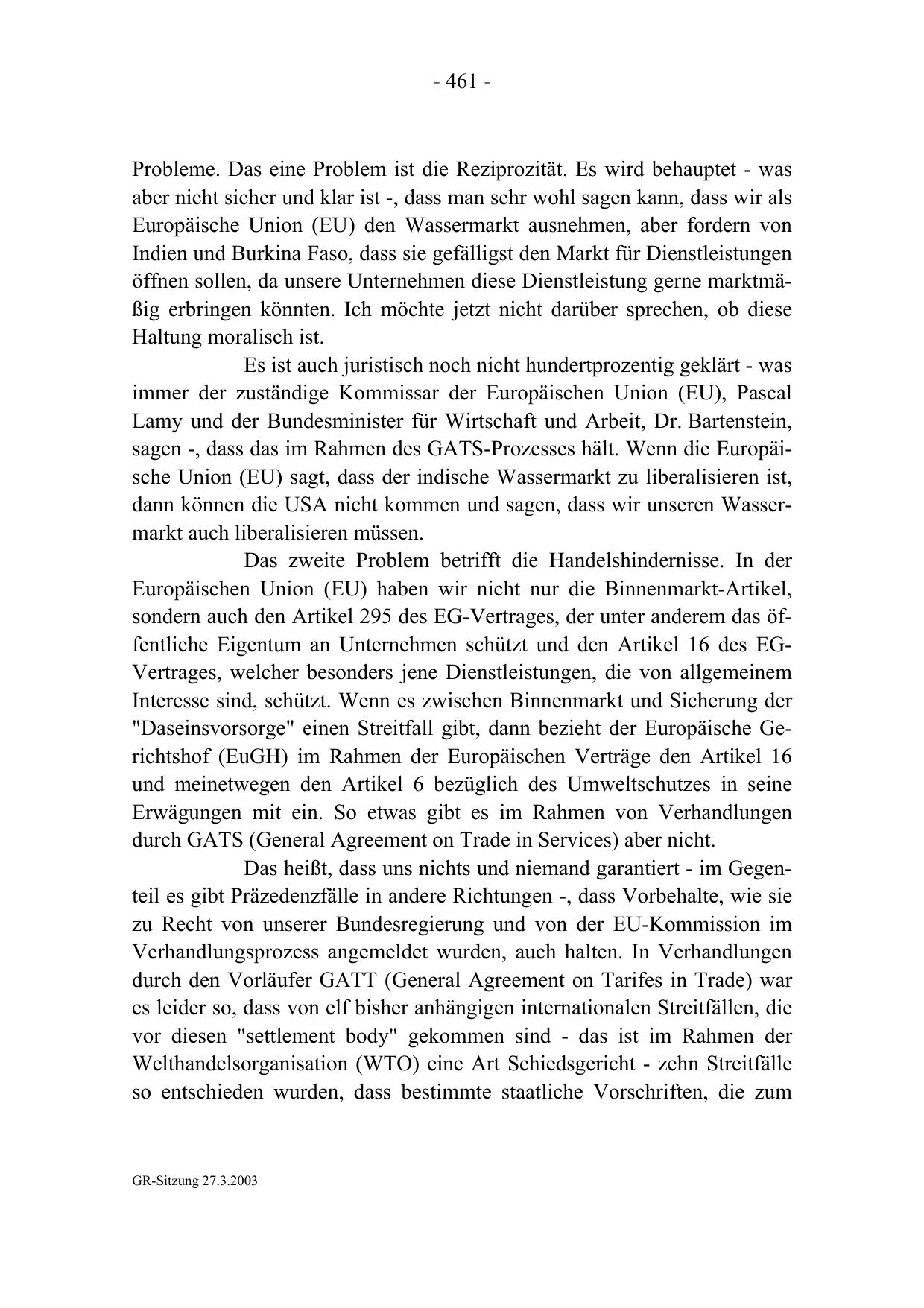 durch GATS (General Agreement on Trade in Services) aber nicht.