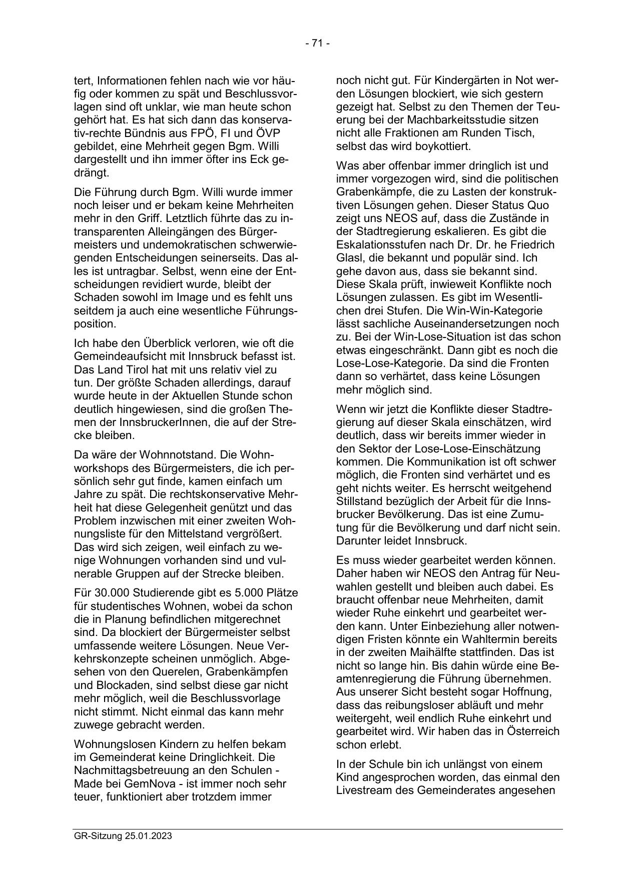 Stillstand bezüglich der Arbeit für die Innsbrucker Bevölkerung. Das ist eine Zumutung für die Bevölkerung und darf nicht sein.