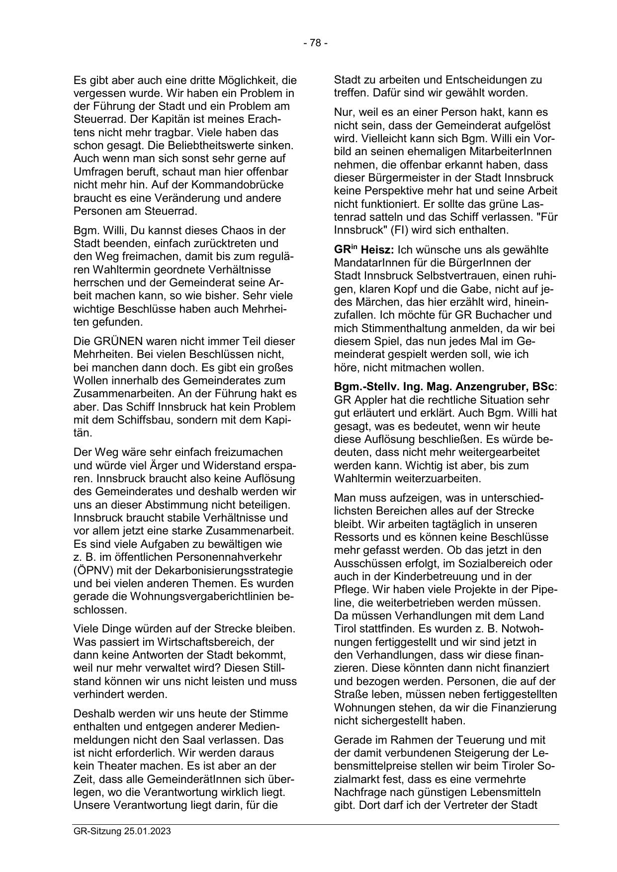 und würde viel Ärger und Widerstand ersparen. Innsbruck braucht also keine Auflösung