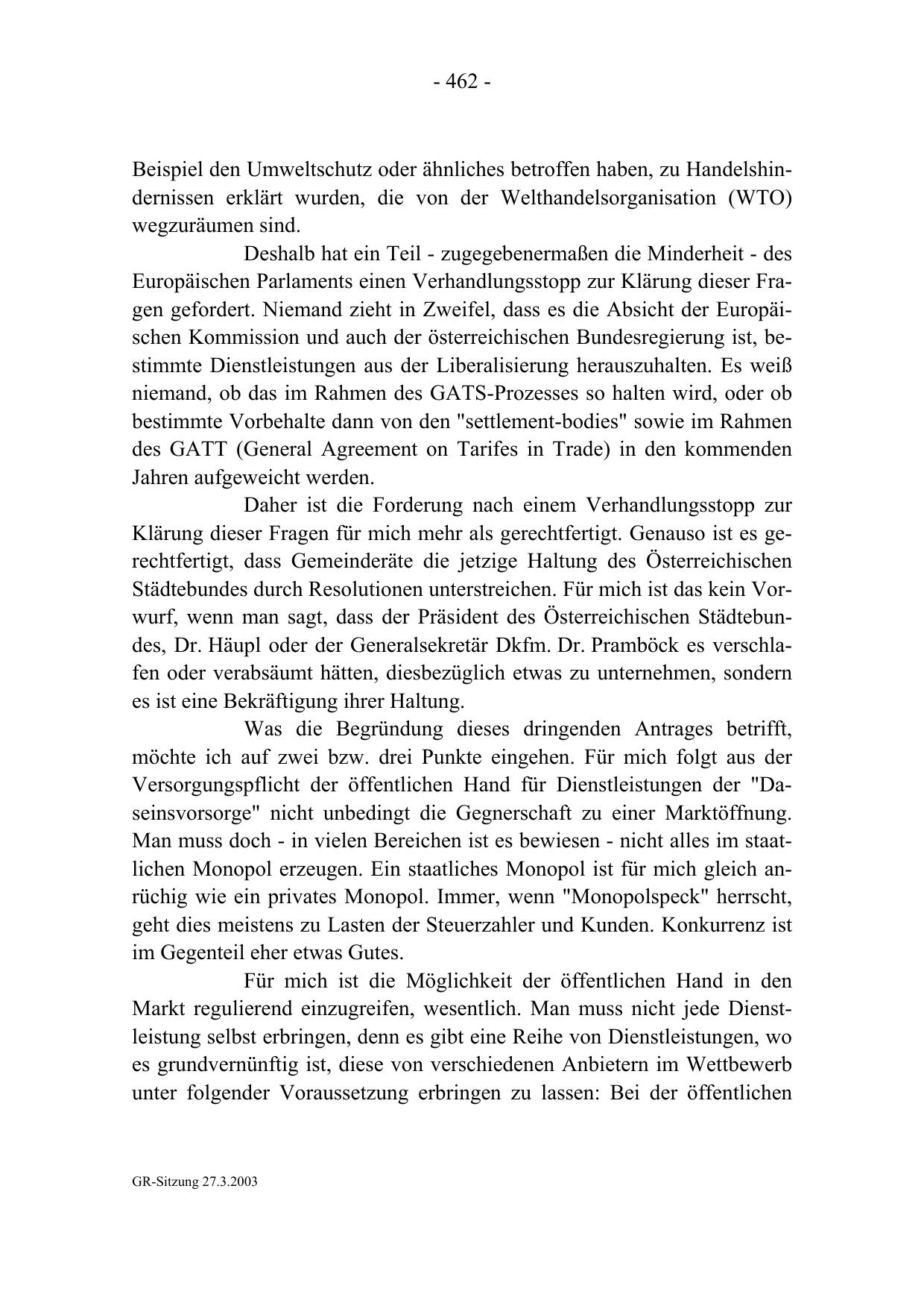 Europäischen Parlaments einen Verhandlungsstopp zur Klärung dieser Fragen gefordert. Niemand zieht in Zweifel, dass es die Absicht der Europäischen Kommission und auch der österreichischen Bundesregierung ist, bestimmte Dienstleistungen aus der Liberalisierung herauszuhalten. Es weiß