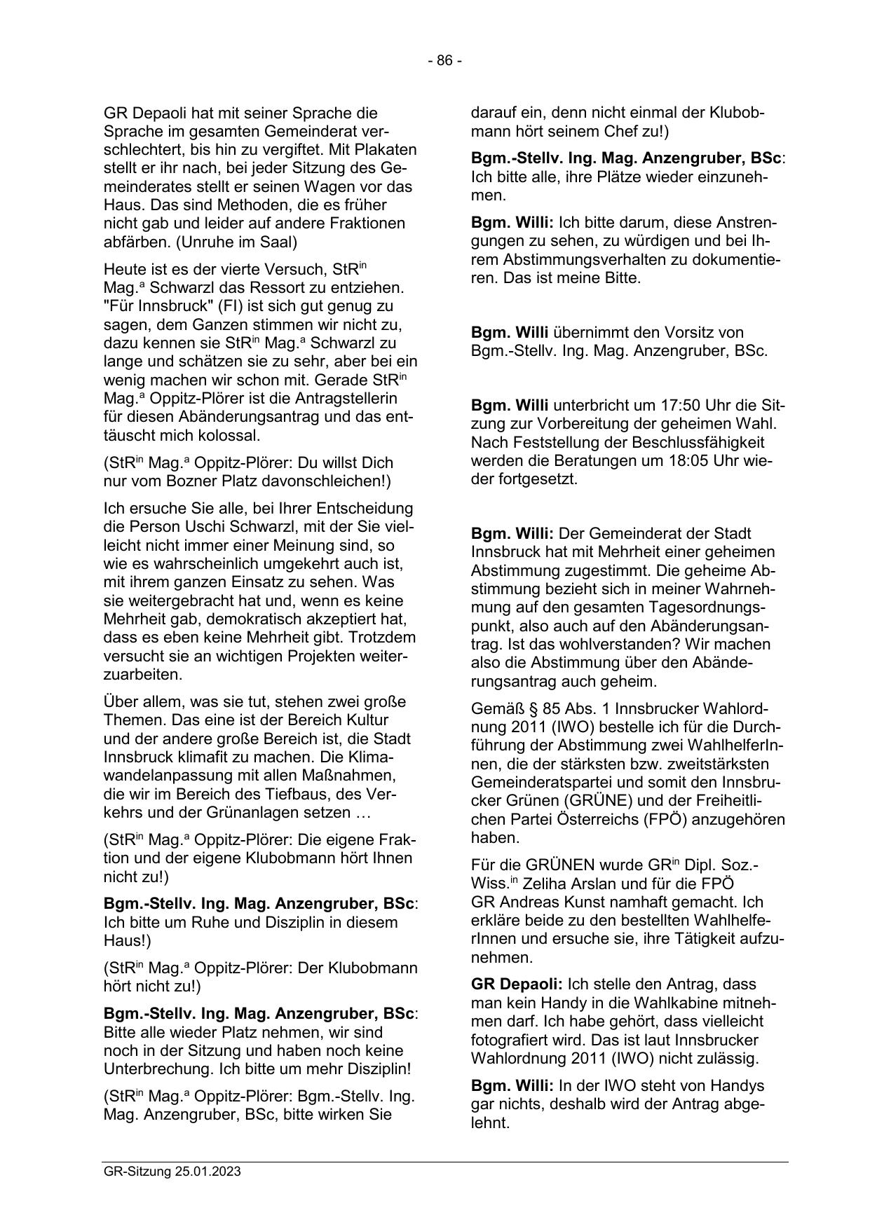 Gemeinderatspartei und somit den Innsbrucker Grünen (GRÜNE) und der Freiheitlichen Partei Österreichs (FPÖ) anzugehören