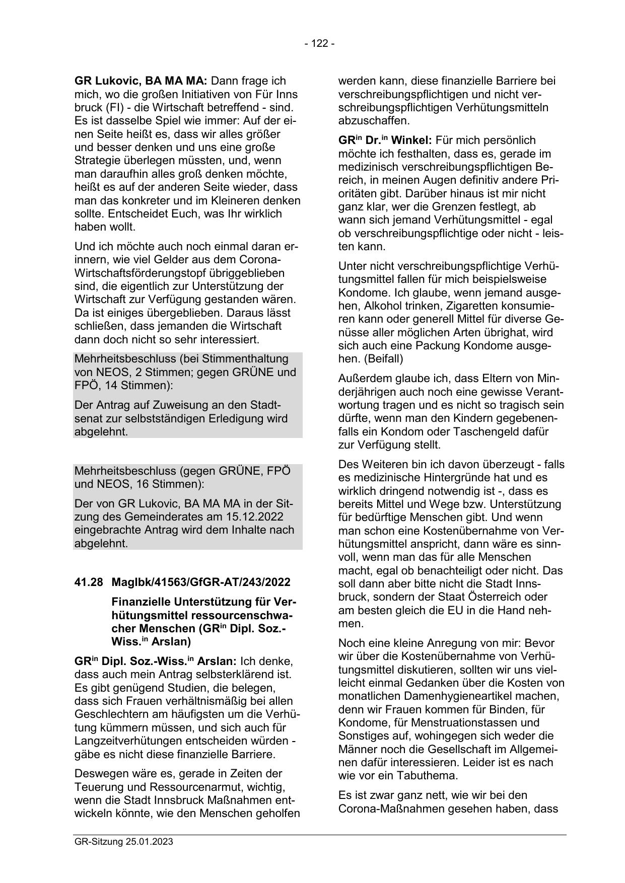 Der von GR Lukovic, BA MA MA in der Sitzung des Gemeinderates am 15.12.2022