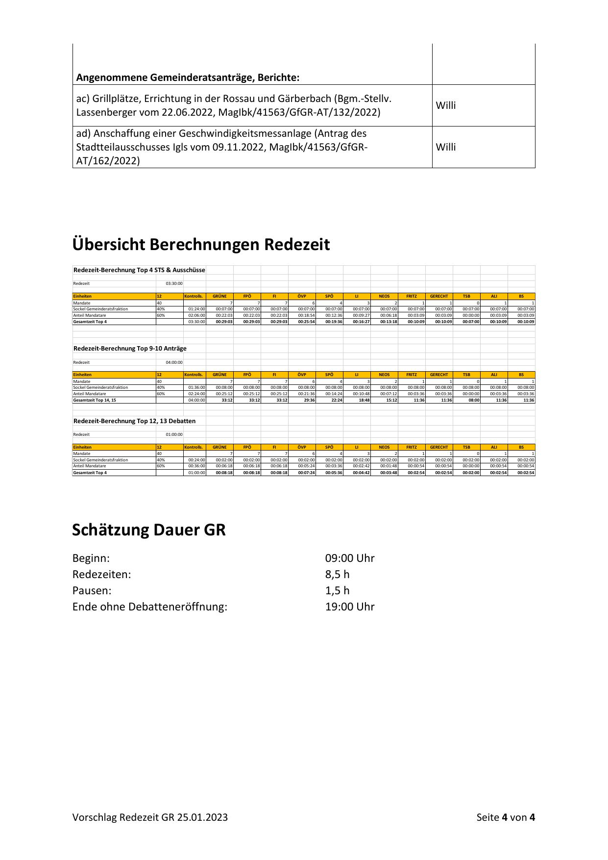 Redezeit-Berechnung Top 4 STS & Ausschüsse