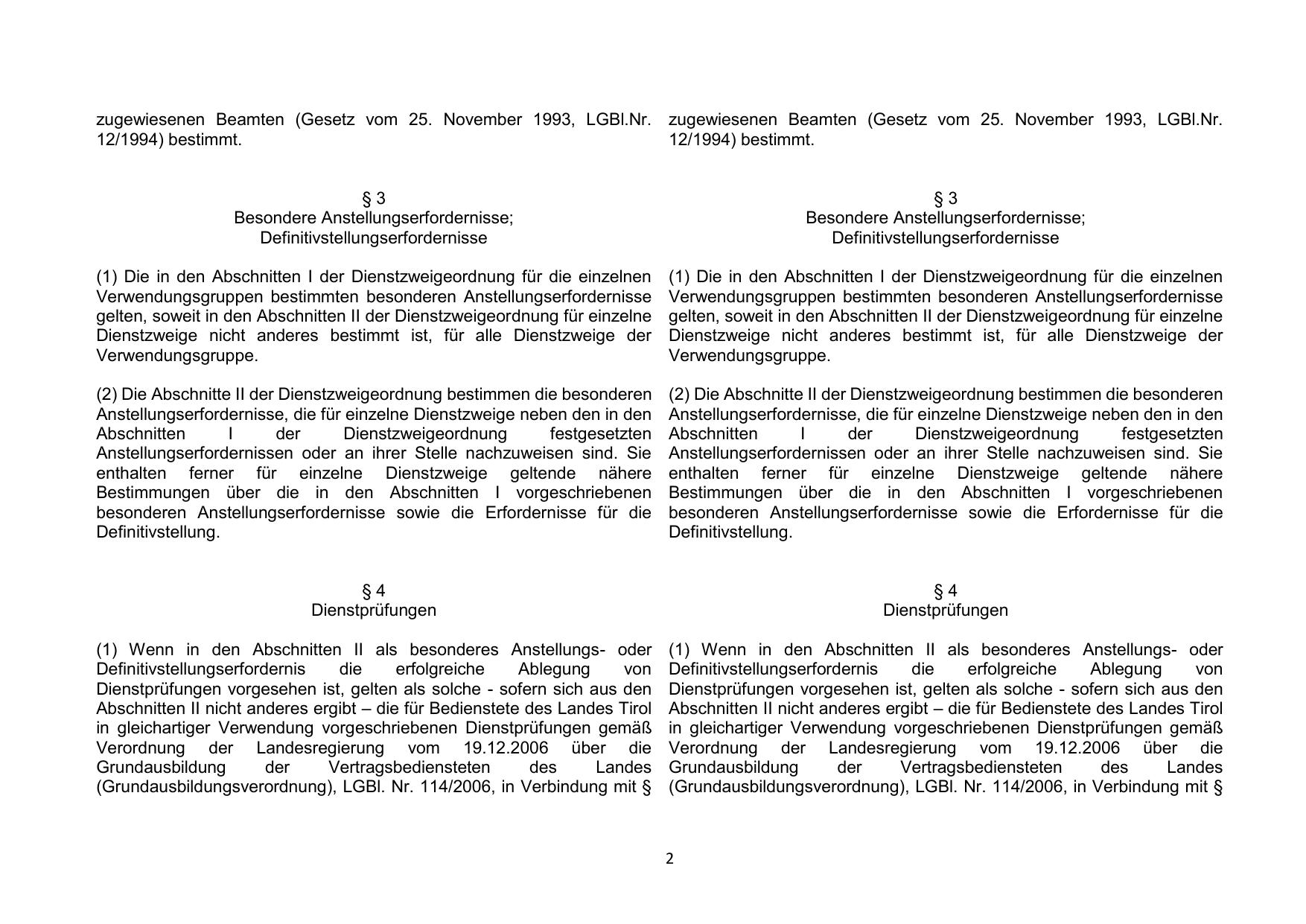 Abschnitten II nicht anderes ergibt – die für Bedienstete des Landes Tirol