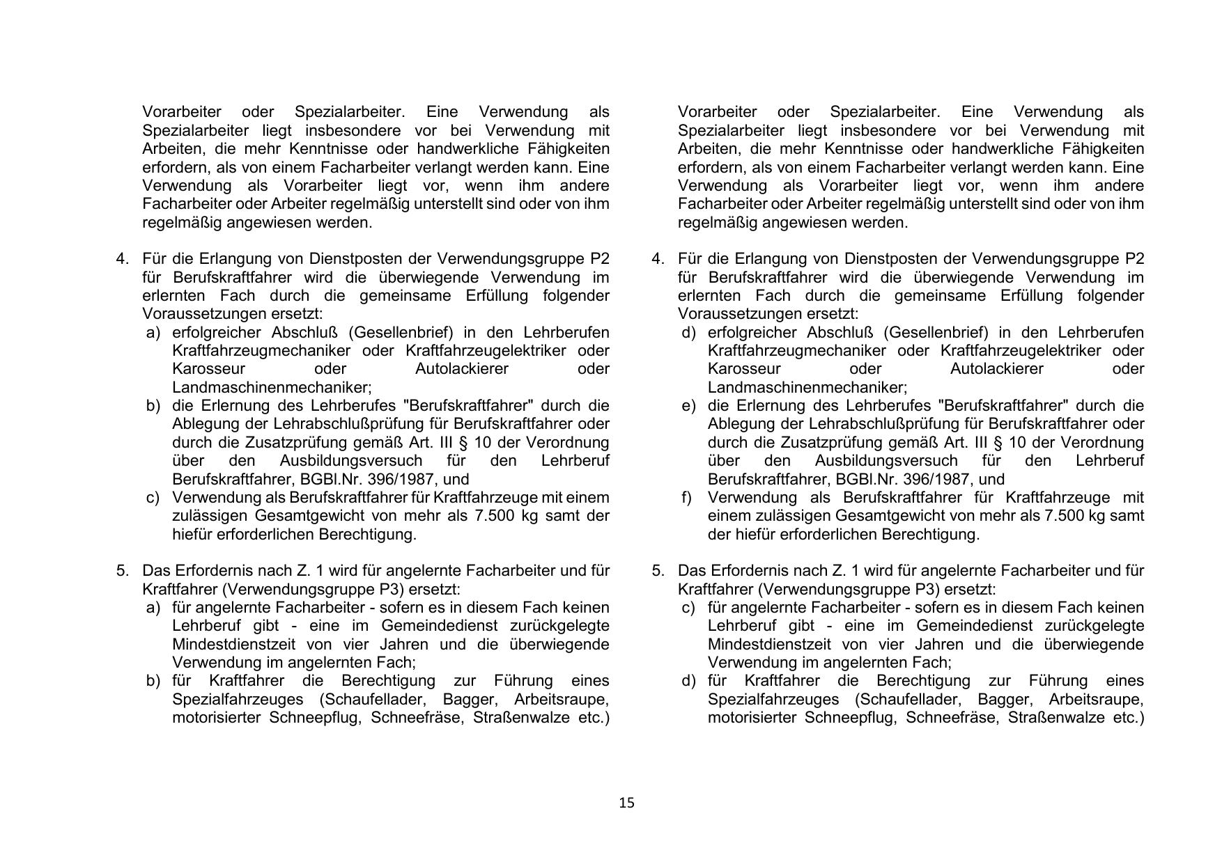 Kraftfahrer (Verwendungsgruppe P3) ersetzt: