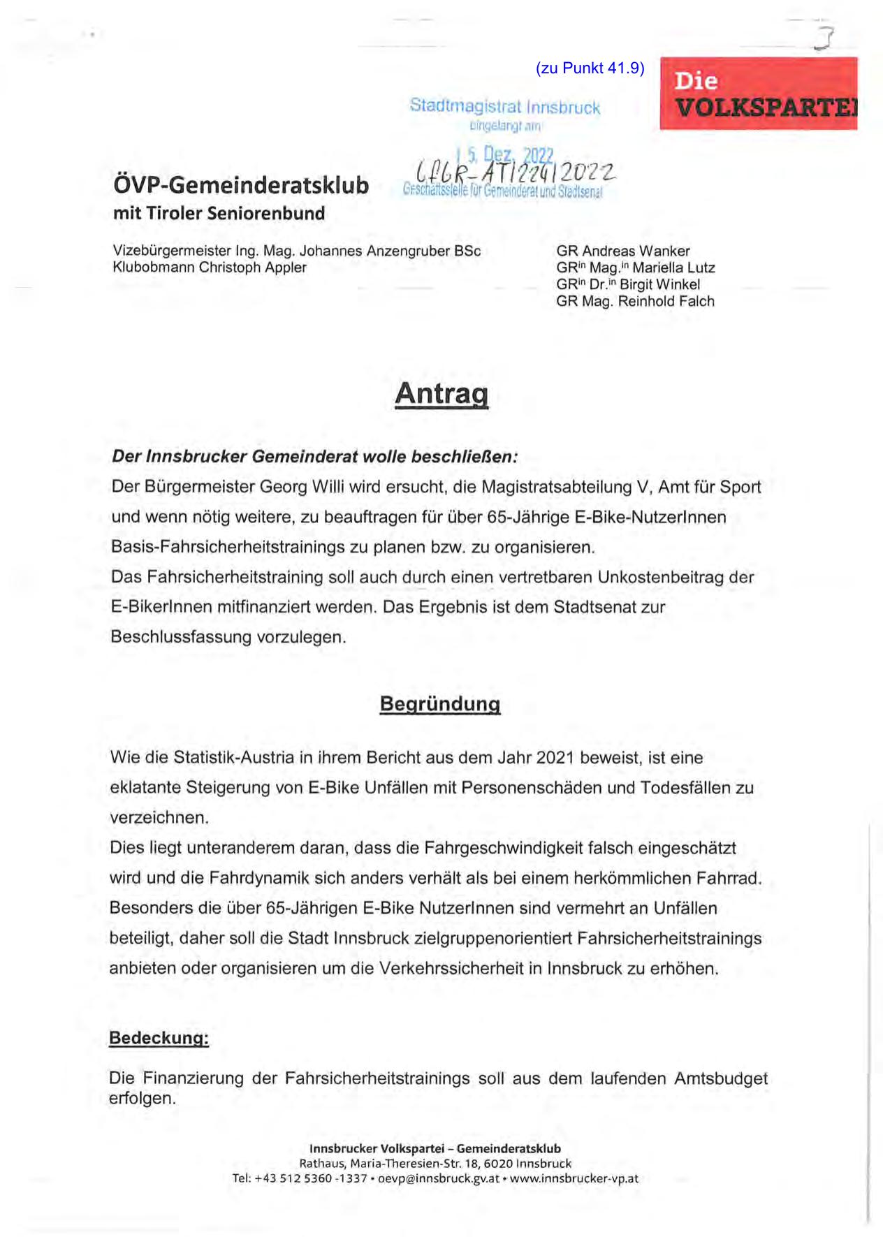 Tel : +43 5-12 5360 -1337 • oevp@innsbruck.gv.at • www.innsbrucker-vp.at