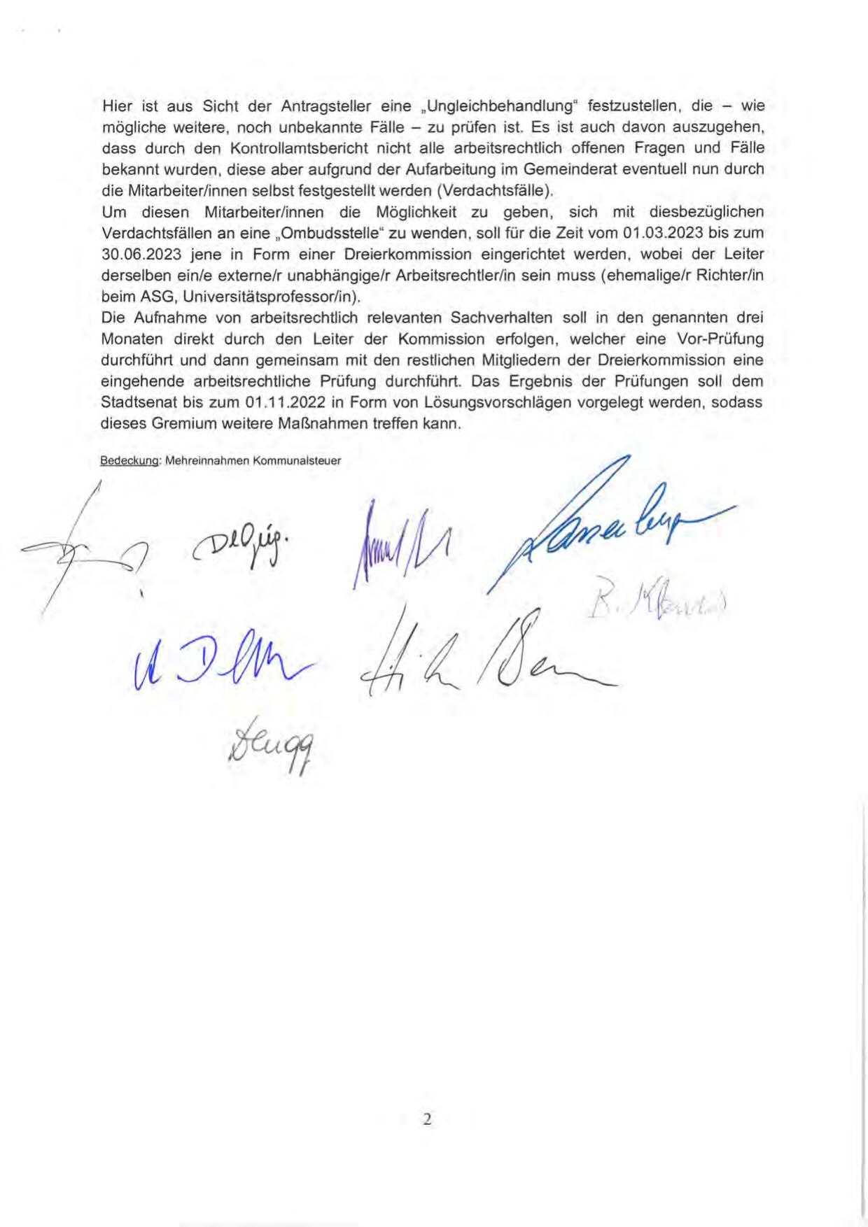 Stadtsenat bis zum 01 .11 .2022 in Form von Lösungsvorschlägen vorgelegt werden , sodass