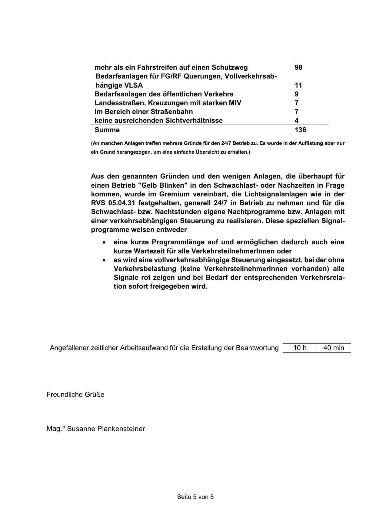 Angefallener zeitlicher Arbeitsaufwand für die Erstellung der Beantwortung