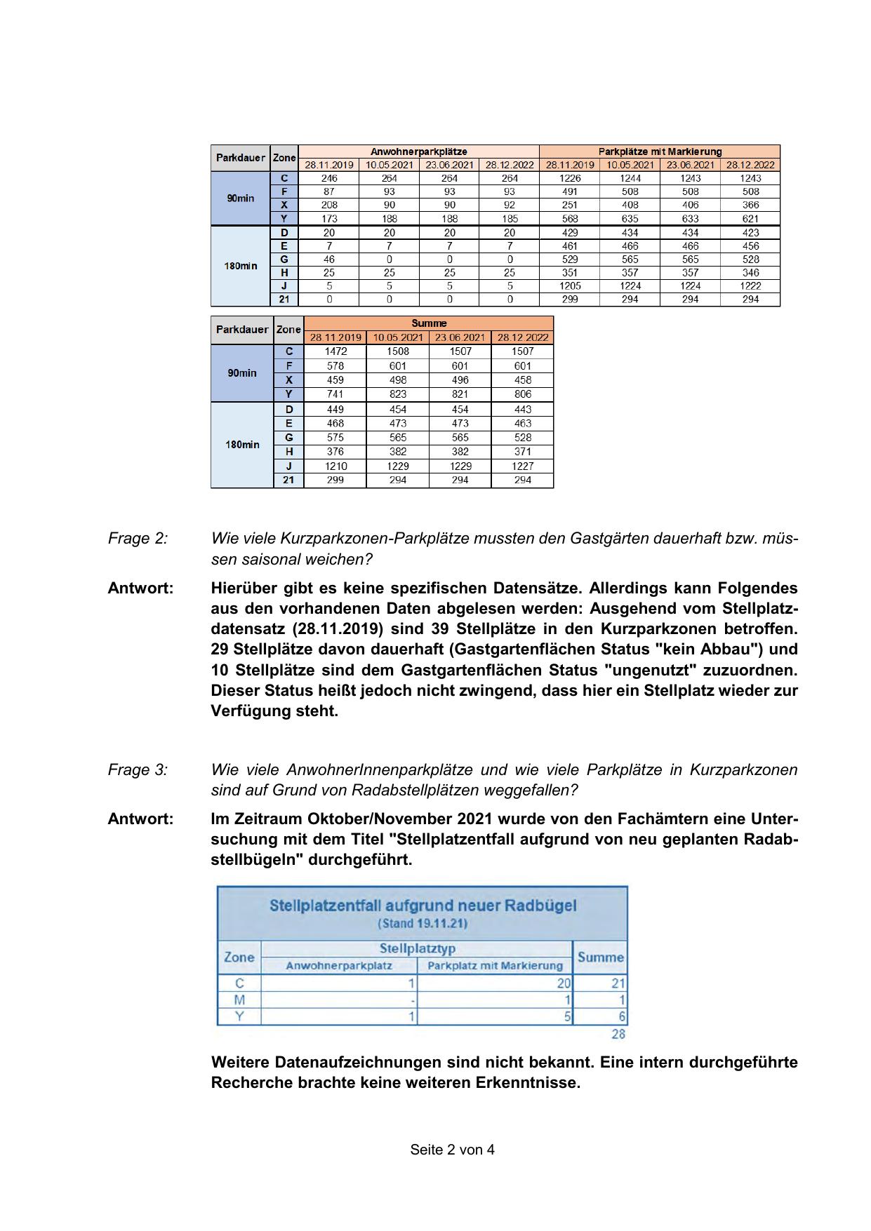 Im Zeitraum Oktober/November 2021 wurde von den Fachämtern eine Untersuchung mit dem Titel "Stellplatzentfall aufgrund von neu geplanten Radabstellbügeln" durchgeführt.