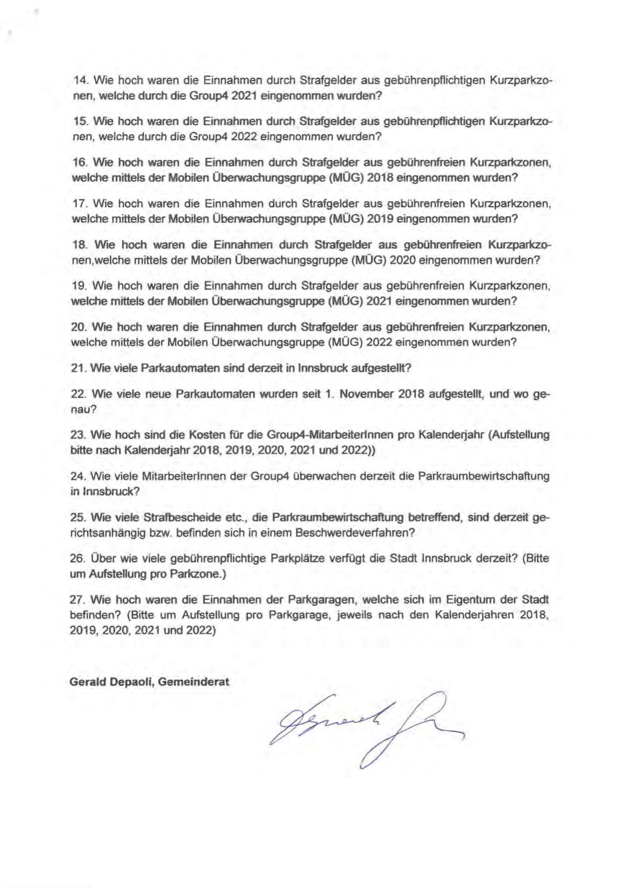21 . Wie viele Parkautomaten sind derzeit in Innsbruck aufgestellt?
