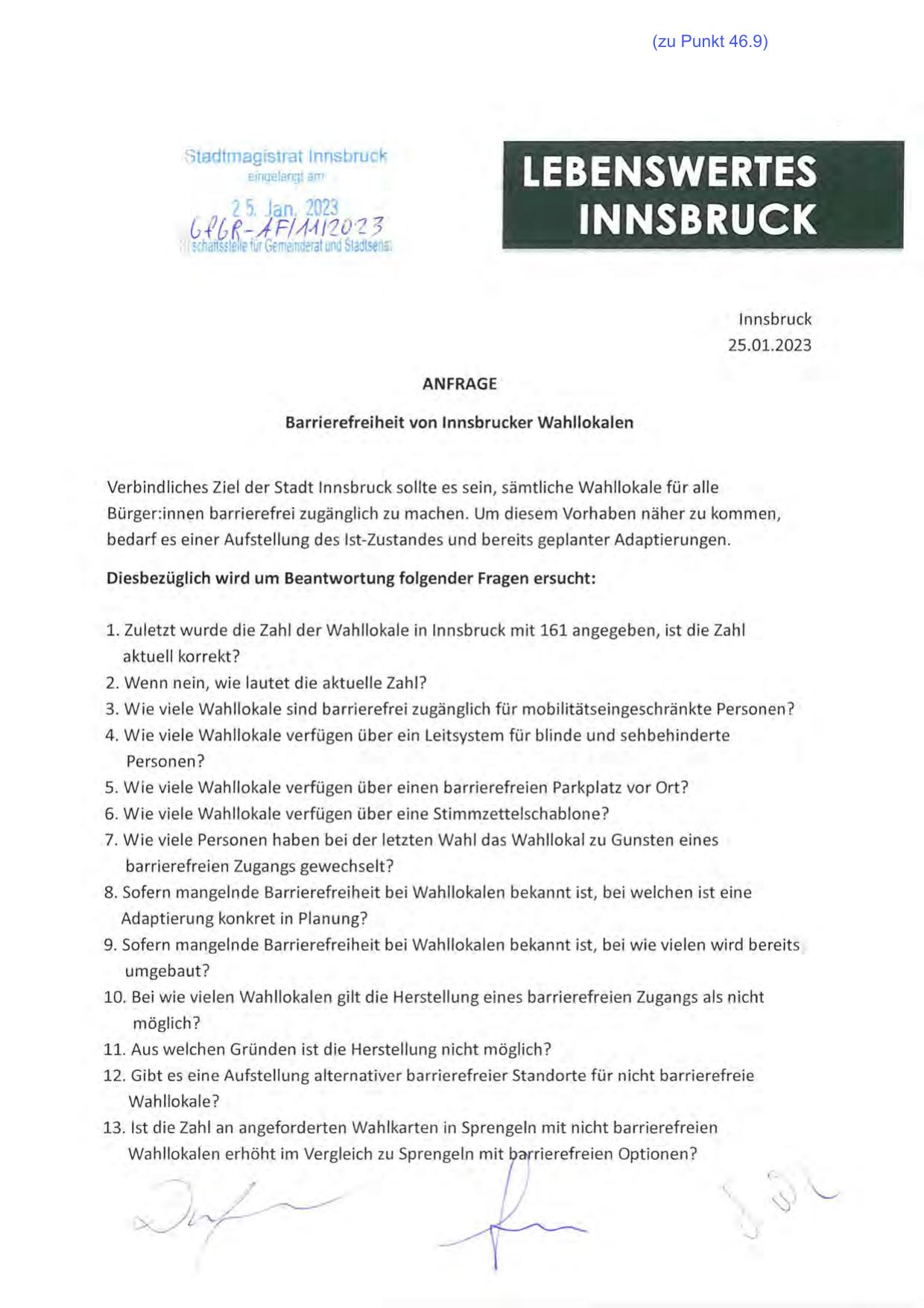 Verbindliches Ziel der Stadt Innsbruck sollte es sein, sämtliche Wahllokale für alle