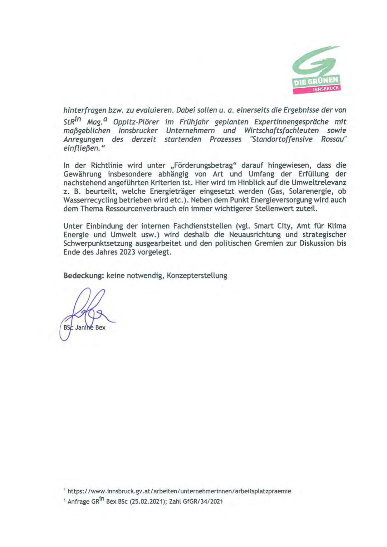1 Anfrage GRin Bex BSc (25.02.2021); Zahl GfGR/34/2021