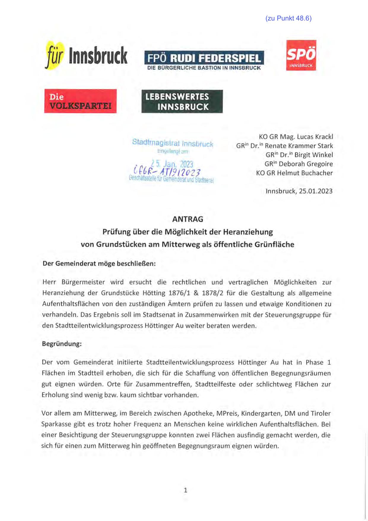 Heranziehung der Grundstücke Hötting 1876/1 & 1878/2 für die Gestaltung als allgemeine