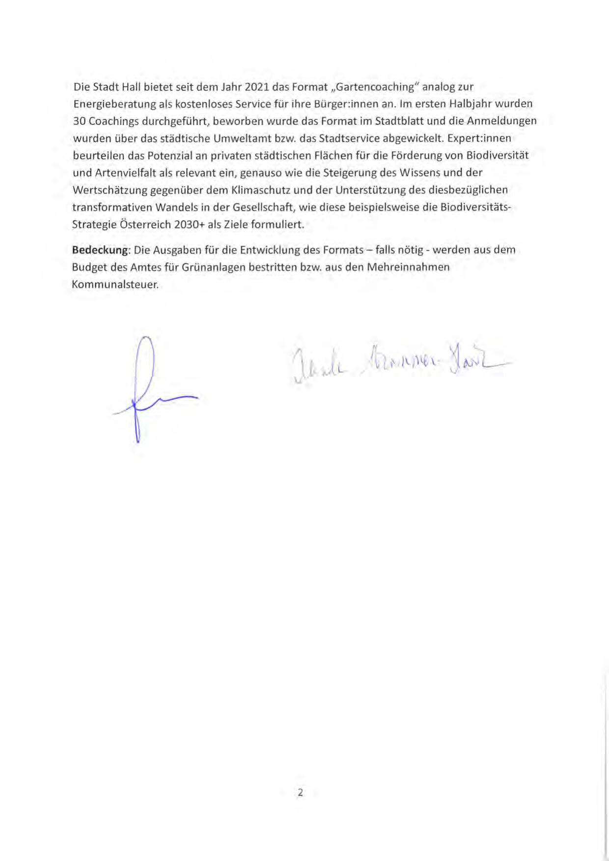 Die Stadt Hall bietet seit dem Jahr 2021 das Format „Gartencoaching" analog zur