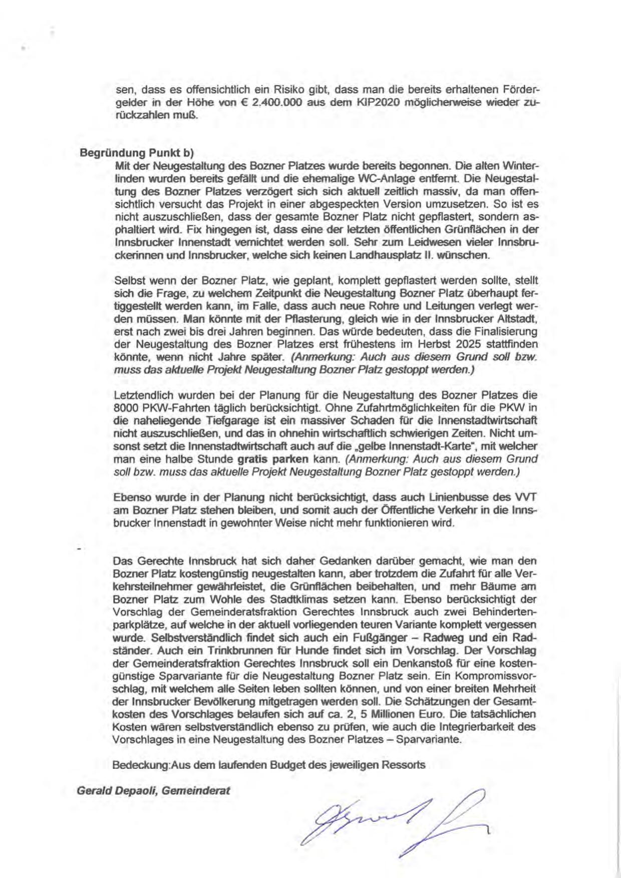 muss das aktuelle Projekt Neugestaltung Bozner Platz gestoppt werden.)
