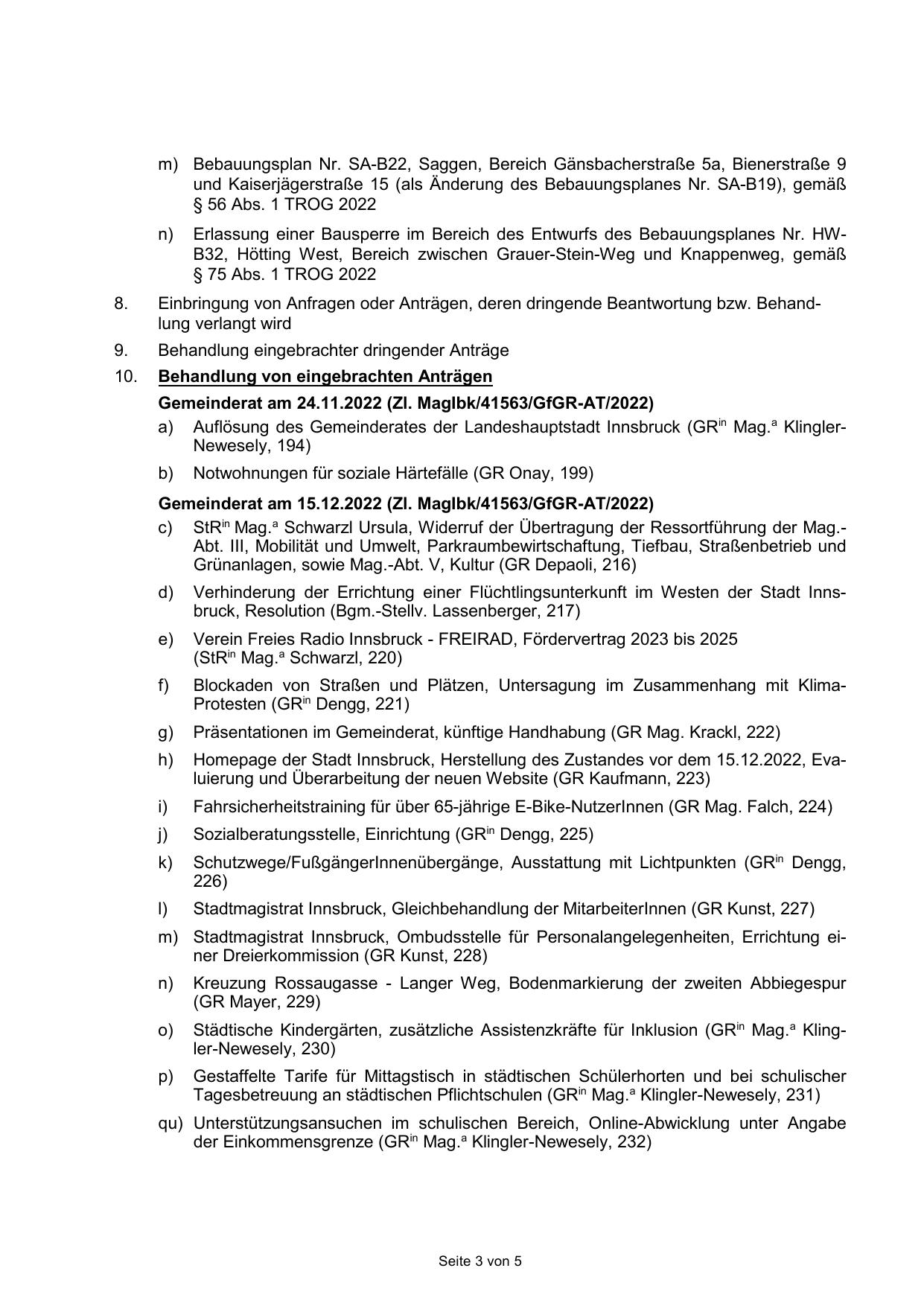 Gemeinderat am 15.12.2022 (Zl. MagIbk/41563/GfGR-AT/2022)